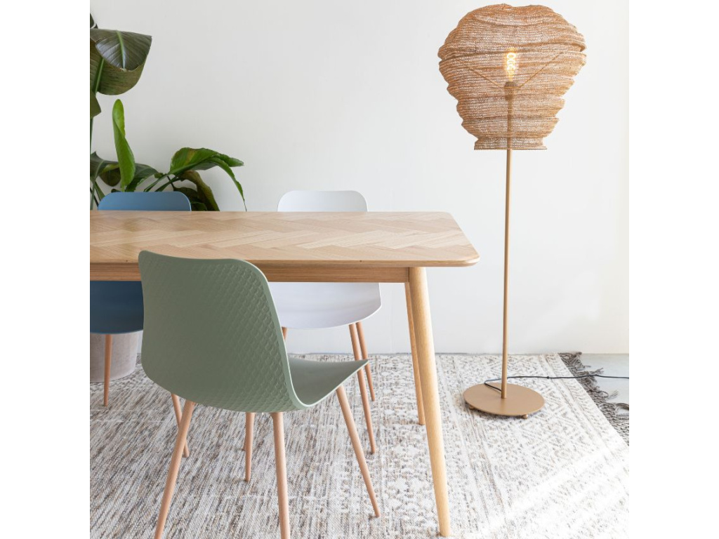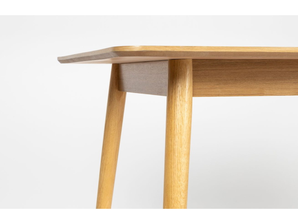 Jídelní stůl WLL FABIO s dubovou dýhovanou deskou a masivní dubovou podnoží je moderní, minimalisticky řešený stůl, který velmi dobře doplní interiéry s industriálními prvky i prvky moderního designu. Hledáte-li stylový jídelní stůl do jídelny či restaurace, představuje tento stůl výbornou volbou. V interiéru jej můžete sladit s toaletním a konferenčním stolkem ze série FABIO a dodat tak prostoru ucelený charakter.