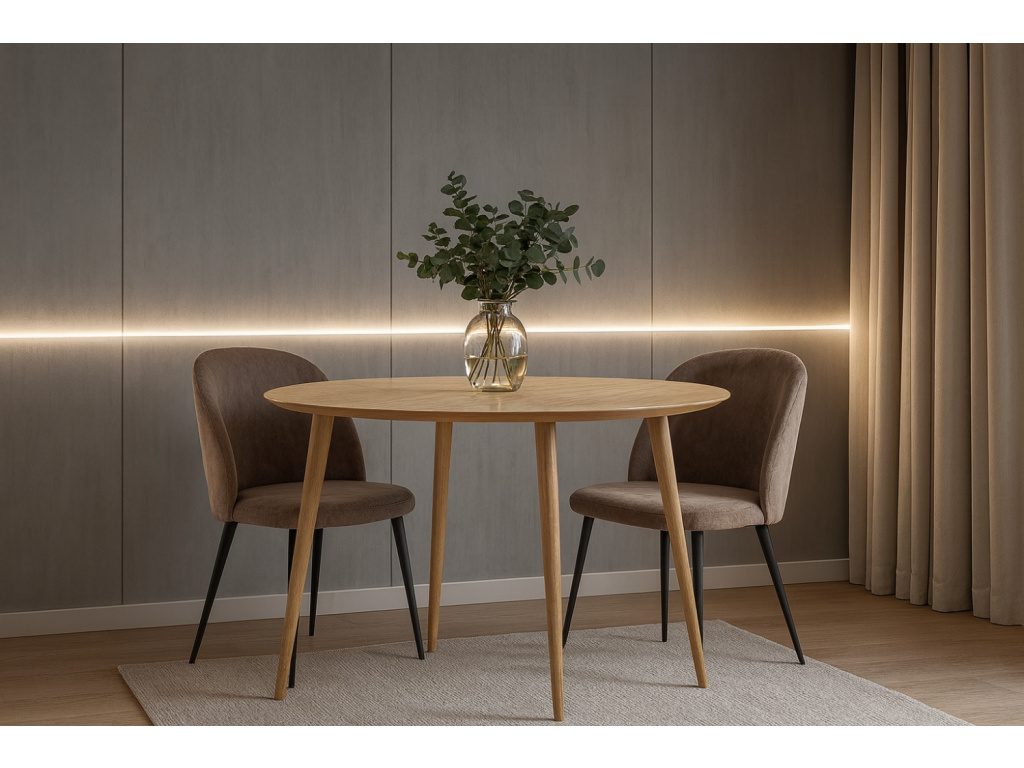 Kulatý jídelní stůl Woodman Cloyd nabízí místo k sezení pro čtyři osoby. Skvěle zapadne do klasicky i moderně zařízené jídelny. Jeho desku tvoří přírodně zbarvená dubová dýha a podnož je vyrobená z masivního dubového dřeva stejné barvy. Cloyd je dostupný ve čtyřech různých barevných provedeních.