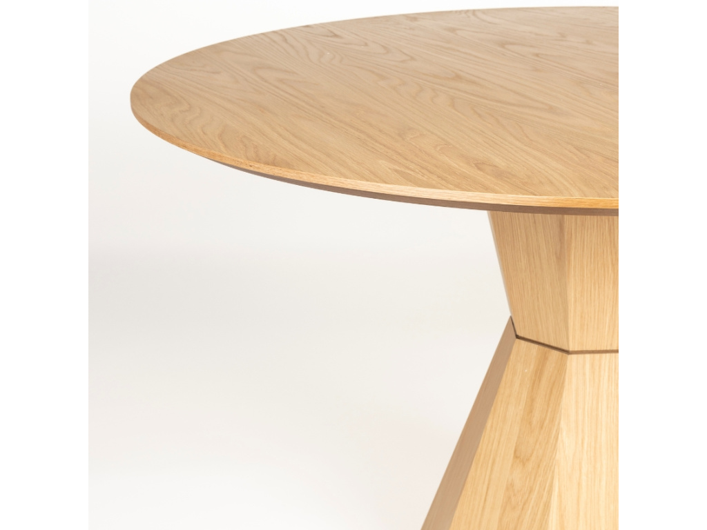 Kulatý jídelní stůl LOTUS od značky ZUIVER představuje nadčasový kus nábytku do vaší jídelny. Tento designový kousek bude ideálním útočištěm pro rodinné večere a posezení s přáteli. Standardně stůl nabízí místo pro čtyři osoby, ale díky středové podnoži lze poskytnout sezení pro více osob. LOTUS se pyšní krásnou přírodní strukturou dřeva, která bude přirozeně ladit s ostatním nábytkem a doplňky. Deska je vyrobena z dubové dýhy s hladkým čistým povrchem. Ze stejného materiálu je také podnož, která svými hranami a čistými liniemi dokonale kontrastuje s kulatou deskou stolu. Pozvedněte svoji jídelnu tímto minimalistickým kouskem, který bude bezpochyby dominantou vašeho interiéru.