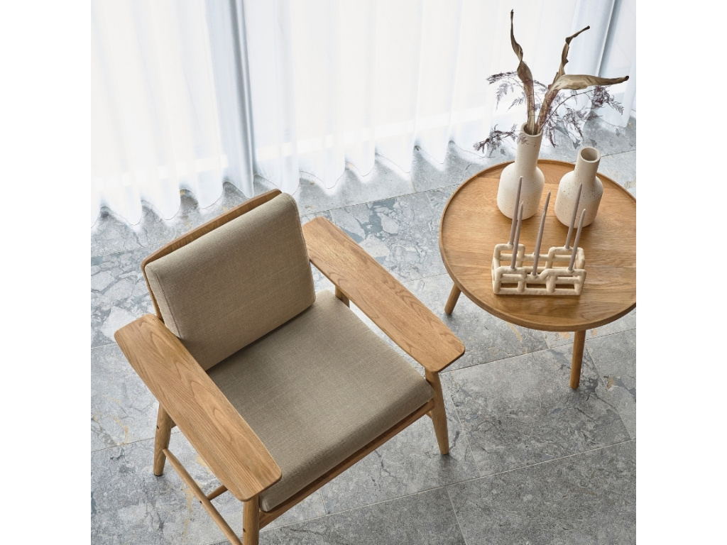 Kulatý konferenční stolek Bodo v přírodním odstínu dřeva přináší do vašeho domova harmonii a styl. Jeho jednoduchý tvar a kvalitní materiál dubového dřeva se snadno začlení do jakéhokoli obývacího pokoje, kde poslouží jako ideální místo pro umístění dekorací, kávy nebo knih. Vyvýšený okraj stolku zabraňuje pádu předmětů, což z něj činí nejen esteticky přitažlivý, ale i praktický doplněk. V kolekci Bodo najdete další skvělé produkty ve stejném designu, jejichž spojením dosáhnete naprostého vyladění vašeho interiéru.