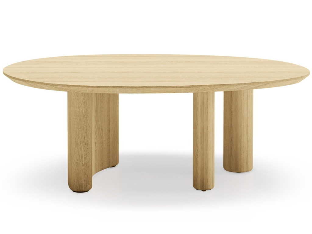 Konferenční stolek Cecile na první pohled zaujme svou originální podnoží, která je tvořena třemi asymetrickými částmi. Tento výrazný prvek dodává stolku osobitý charakter a udělá z něj designovou dominantu každého obývacího pokoje. Oválná deska z dubové dýhy působí elegantně a harmonicky, zatímco jemně strukturovaný povrch láká k doteku. Stolek Cecile se skvěle zapadne do skandinávsky laděných interiérů, kde přináší do prostoru přirozenou eleganci, teplo dřeva a vizuální originalitu. Kousek, který spojuje funkčnost s estetickým výrazem – Cecile promění váš obývací pokoj v místo s duší.