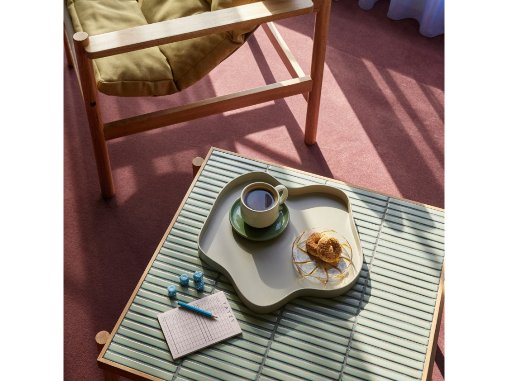 Konferenční stolek Tile je nepostradatelným kouskem do každého moderního domova. Jeho deska je ozvláštněna mátově zelenými dlaždicemi, které mu dodávají šmrnc a vintage nádech. Jeho konstrukce je vyrobena z dubové dýhy a dubového dřeva s certifikací FSC, takže se může pochlubit nejen jedinečným designem, ale také udržitelností. Dodejte svému interiéru osobitost se stolkem Tile! K dispozici je i v menší velikosti – pospolu vypadají perfektně!