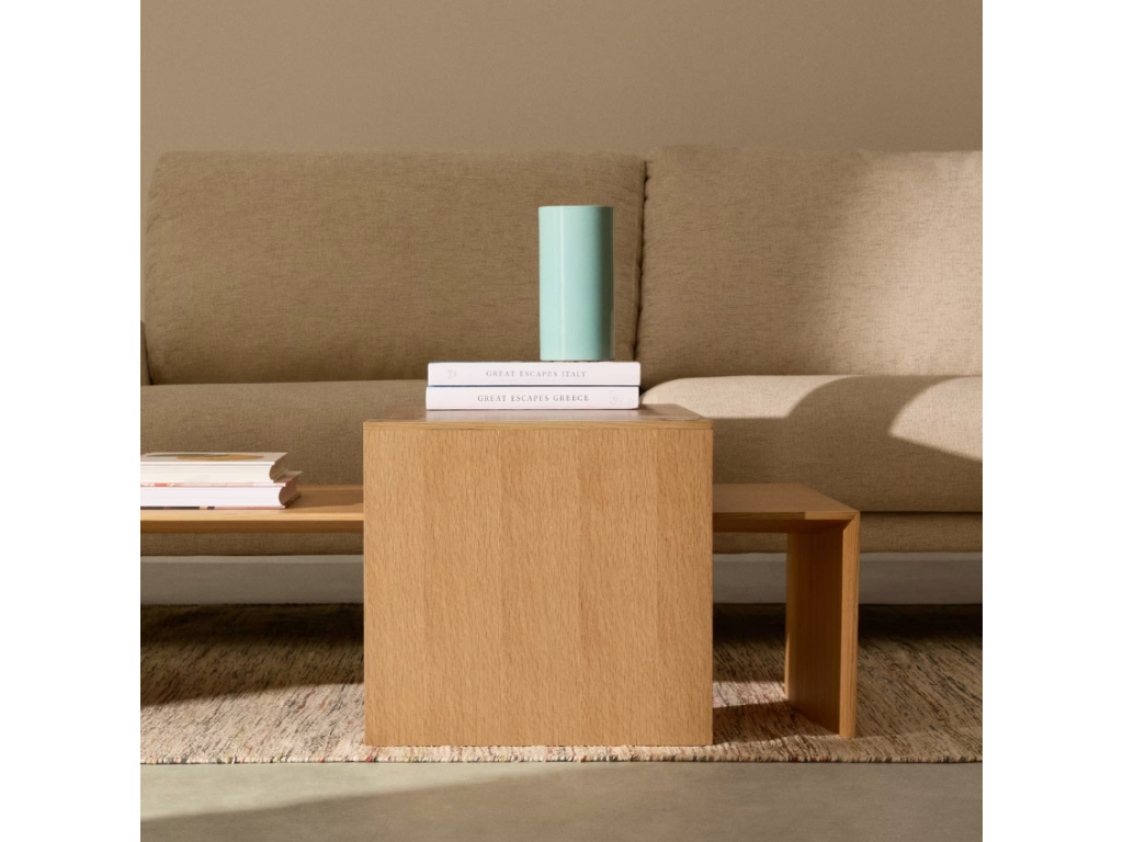 Nábytek Litto od značky Kave Home v sobě kombinuje nadčasovou eleganci a odolnost – nabízí jídelní stoly, konferenční i odkládací stolky a modulární police, které se budou v interiéru skvěle doplňovat. Produkty jsou vyrobeny z dubové dýhy s krásnou výraznou kresbou – díky té vnesou do prostoru nádech útulna a sofistikovanosti. Skvěle se hodí do rustikálních i minimalistických interiérů, slušet jim to bude ve společnosti dalších designovek z přírodních materiálů.