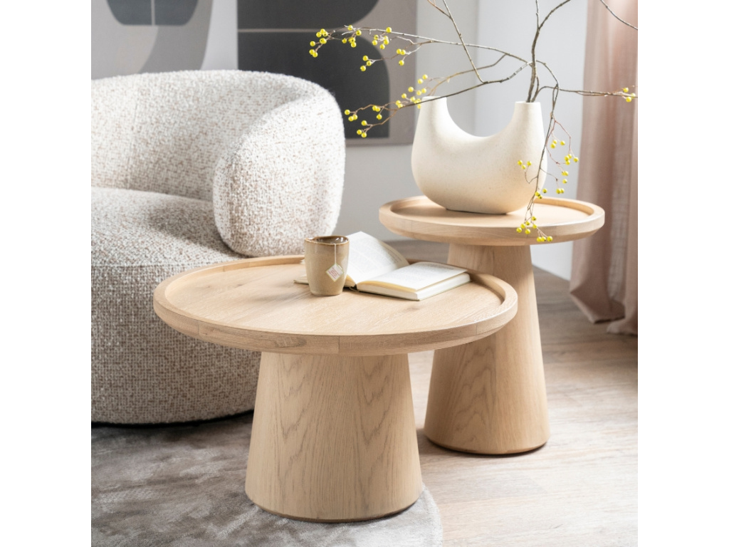 Designéři nizozemské značky Eleonora dbají nejen na kvalitu daného materiálu, ale i na estetiku a funkční design. Odkládací stolky Leia jsou vyrobeny z dubové dýhy. Dýha je lakována průhledným lakem, ale přirozená kresba dřeva zůstává zachována. Nábytek perfektně vynikne v moderních, klasických i vintage interiérech, a to už ať samostatně nebo spolu s dalšími kousky.