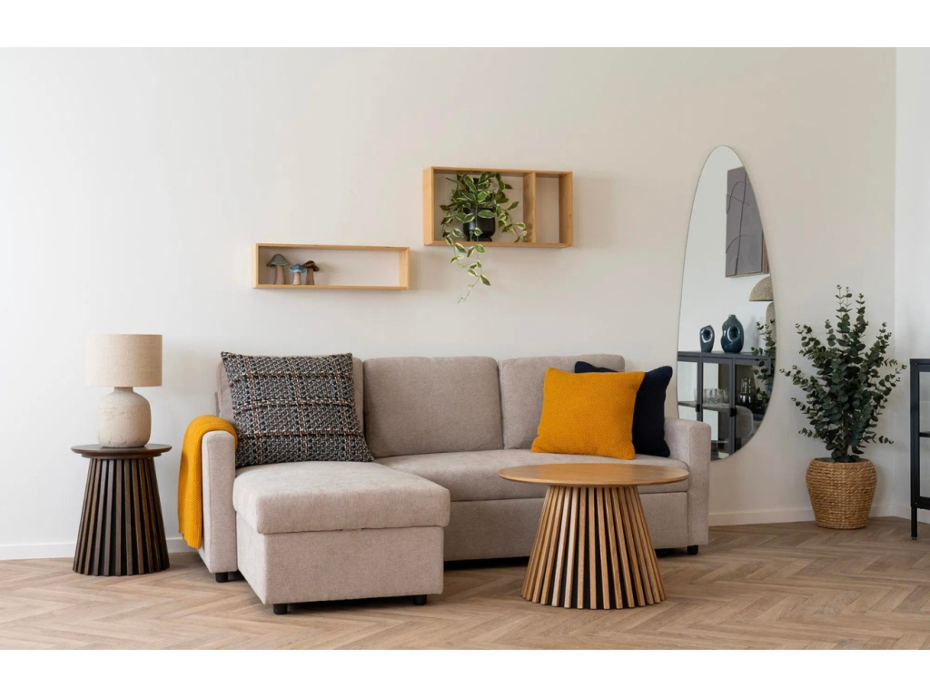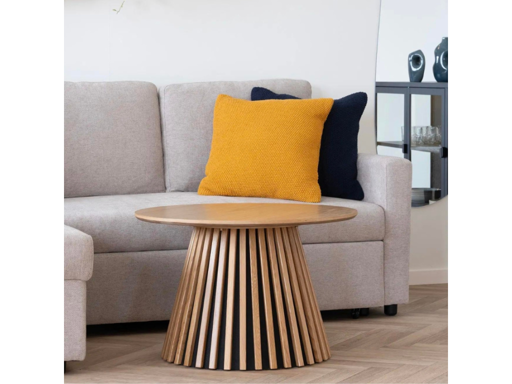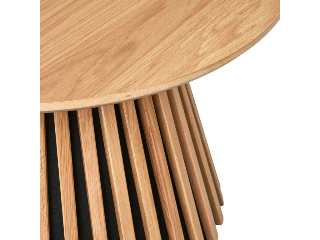 Představujeme vám konferenční stolek Osakien od značky Nordic Living. Je vyroben z dubové dýhy a jeho podnož s designovým žebrováním dodává stolku originální a moderní vzhled. Osakien se bude perfektně vyjímat v obývacím pokoji, kde vám poskytne dostatek místa na knihu, dekorace, občerstvení, nebo zkrátka cokoliv, co se vám může hodit během relaxování na pohovce. Díky výrazné textuře dubového dřeva a originálnímu designu podnože je Osakien ideální pro scandi i minimalistické interiéry.