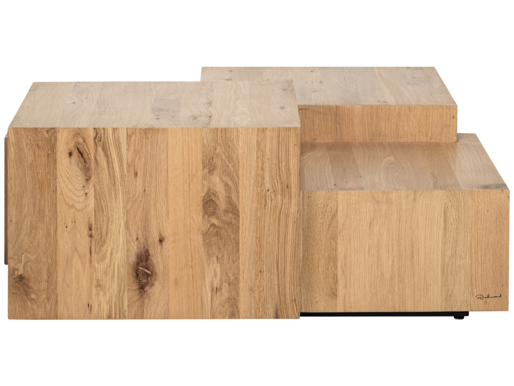 Konferenční stolek Lennox od značky Richmond je důkazem krásy a odvážného, atypického designu. Poslouží jako výrazný designový prvek v téměř jakémkoli interiéru. Lennox je vyroben z přírodní dubové dýhy a může se pochlubit robustním, hranatým tvarem, který upoutá pozornost každé návštěvy. Díky jedinečnému rozčtvrcenému designu, kde každý ze čtyř segmentů sahá do různých výšek, vytváří dynamickou estetiku a hraje si s hloubkou a perspektivou. Díky desce o rozměrech 100 x 100 cm poskytuje Lennox dostatek odkládací plochy na všechny potřebné dekorace a předměty, které chcete mít po ruce. Dodejte svému interiéru styl s touto originální designovkou!