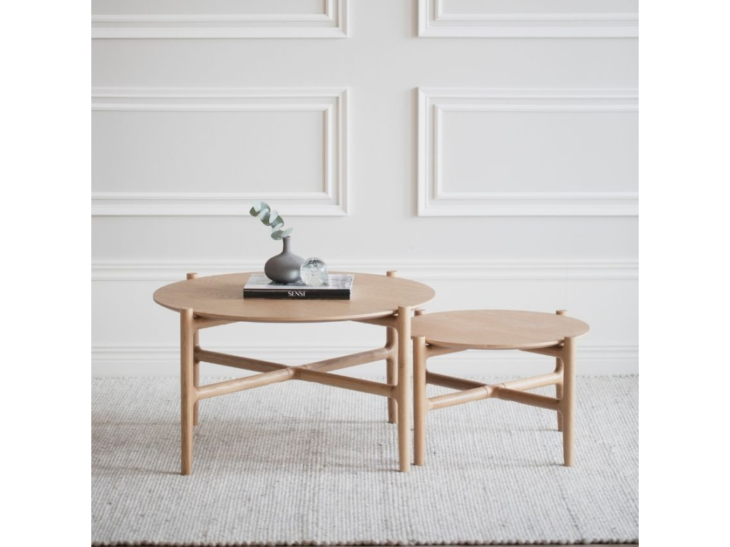 Kulatý konferenční stolek ROWICO HOLTON skvěle zapadne do každého interiéru. Stolek stojí na podnoži z dubového dřeva a jeho deska je z dubové dýhy. Doplnit ho můžete dalšími produkty ze stejnojmenné série. Díky lakovanému povrchu stolek snadno očistíte vlhkým hadříkem.