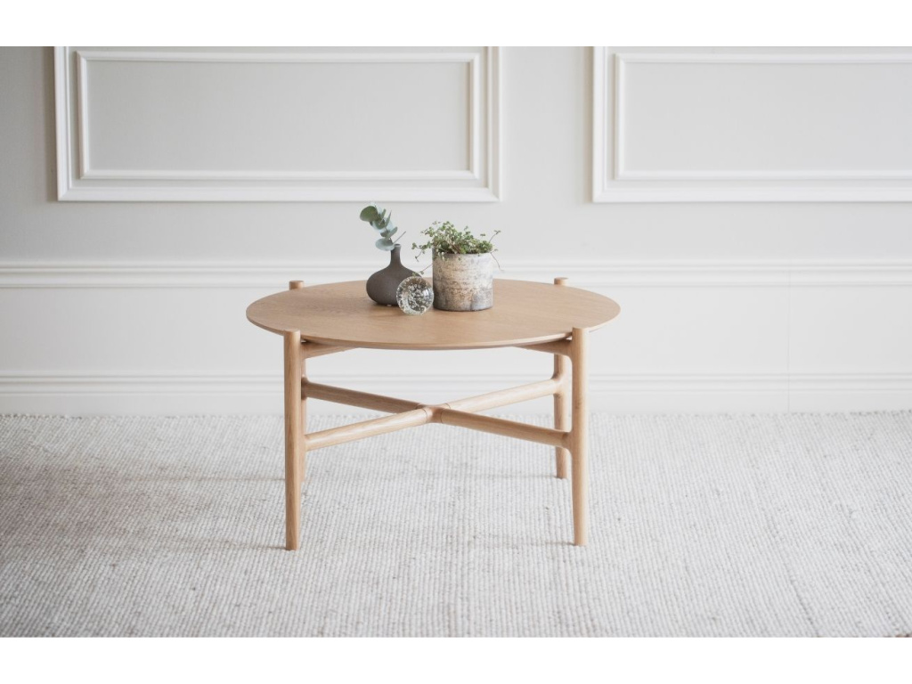 Kulatý konferenční stolek ROWICO HOLTON skvěle zapadne do každého interiéru. Stolek stojí na podnoži z dubového dřeva a jeho deska je z dubové dýhy. Doplnit ho můžete dalšími produkty ze stejnojmenné série. Díky lakovanému povrchu stolek snadno očistíte vlhkým hadříkem.