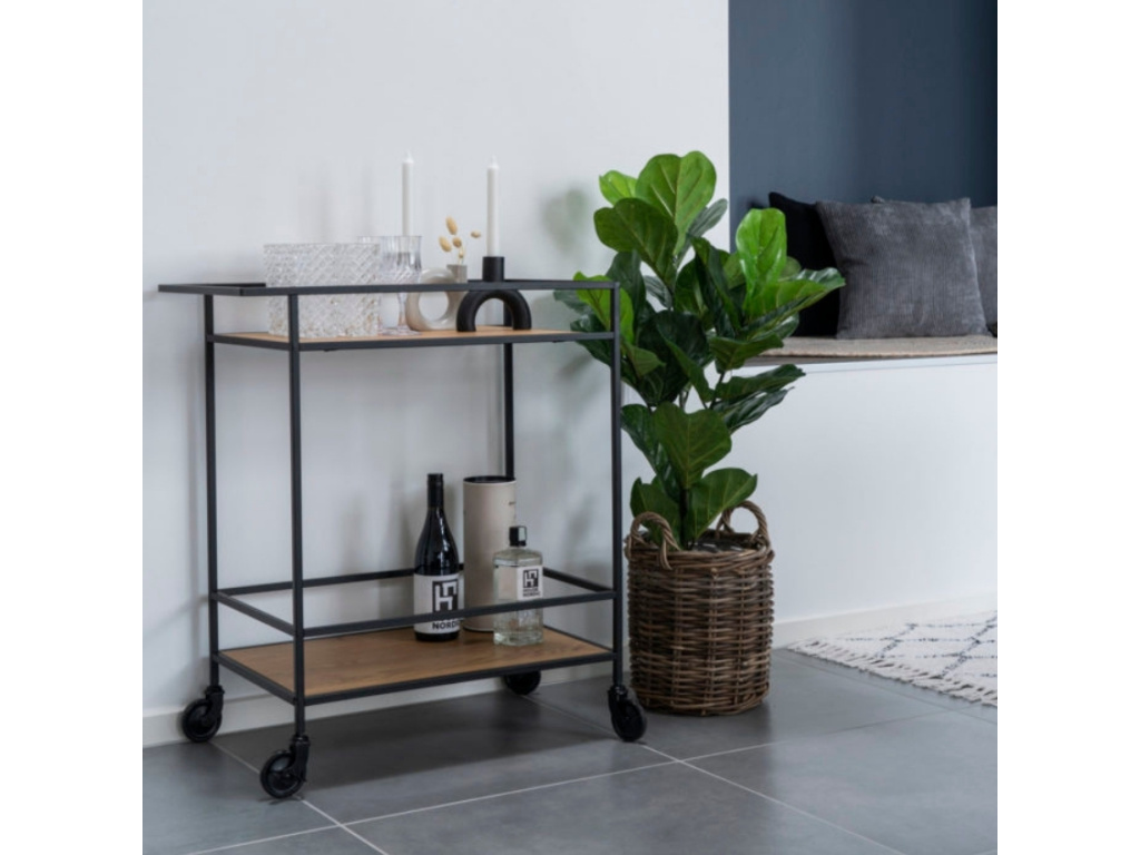 Univerzální dubový odkládací vozík Winter zaujme svým jednoduchým průmyslovým vzhledem. Vozík má víceúčelové využití jako barový stolek při oslavě, servírovací vozík nebo jen prostor pro dekorace a květiny. Příjemným bonusem jsou kovová kolečka, díky nimž lze vozík snadno přemisťovat. Své místo najde v moderním prostředí.