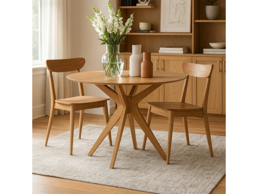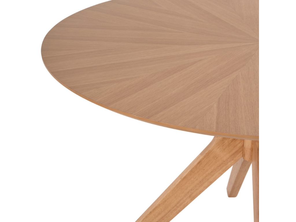 Čtyřmístný, kulatý, dubový stůl Carmel je do detailu dotažené umělecké dílo. Dvoucentimetrová deska z pevného dubu, nabízí krásný hvězdicový vzor, jenž je doplněný prohnutou podnoží, která zaručuje maximální stabilitu stolu. Carmel je výbornou volbou každého vkusně zařízeného interiéru.