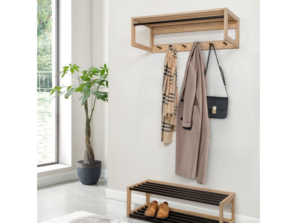 Kombinace kovu a dřeva dodává věšáku Slussen moderní vzhled, který dodává předsíni na osobitosti. Vyjímat se bude jak v moderním tak i klasickém designu a díky 6 háčkům a ocelové trubce máte spoustu prostoru pro vaše oděvy.