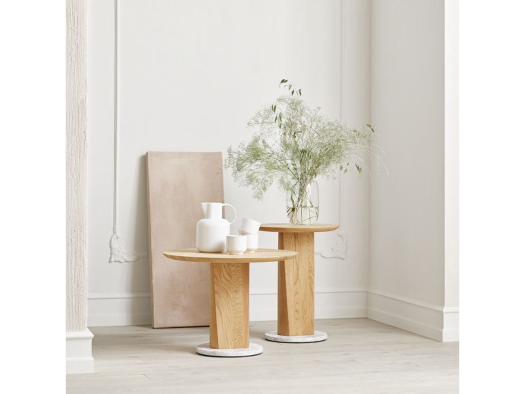 To chciDubový nízký odkládací stolek Root 60 cm s mramorovou podstavou