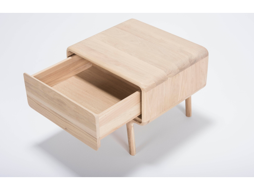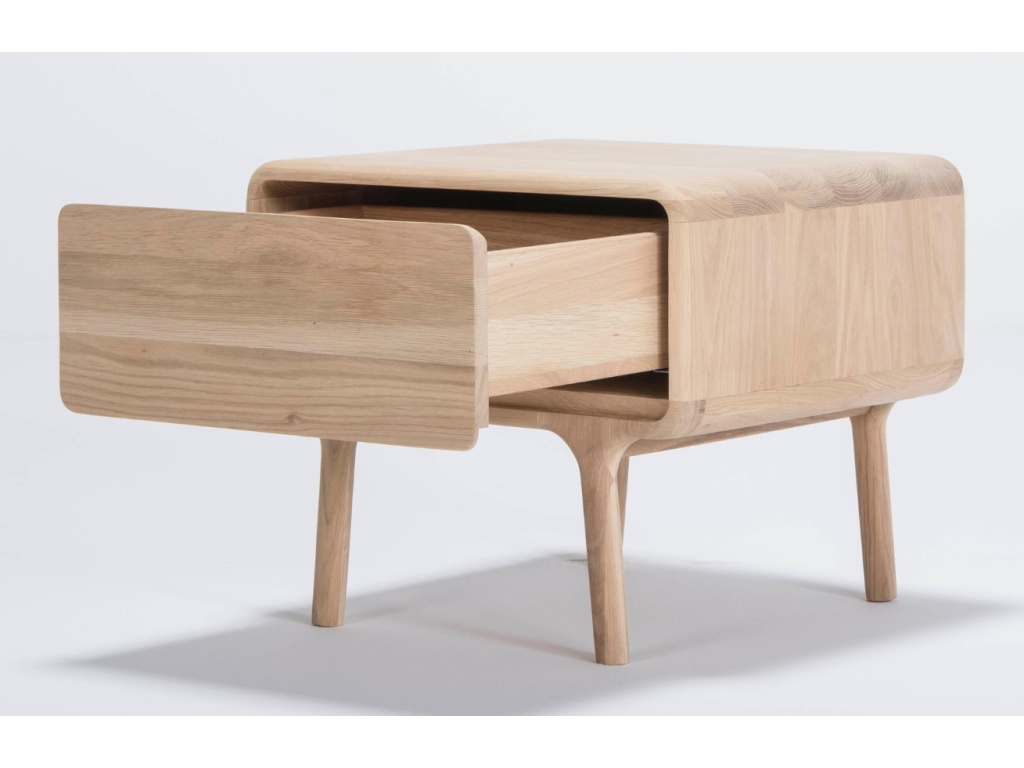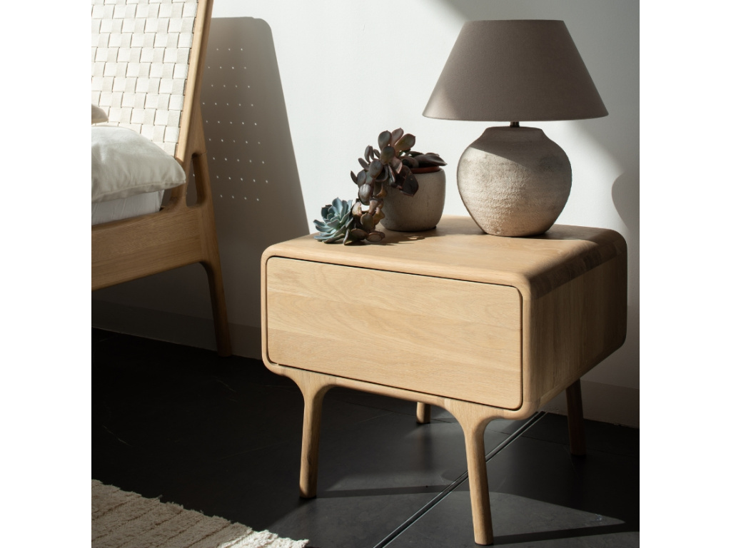 Noční stolek Fawn od značky Gazzda je designovým kouskem, který vnese moderní a svěží styl do vašeho interiéru. Naolejované dubové dřevo doplní zejména jednoduše zařízené interiéry s minimalistickými a skandinávskými prvky. Fawn si najde své místo především v ložnicích či v hotelových pokojích. Série Fawn nabízí i další úložné prostory v podobě TV stolků, komod a šatní skříně – vytvořte si tak jedinečný set, který dodá vašemu domovu styl a eleganci.