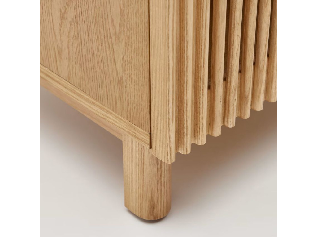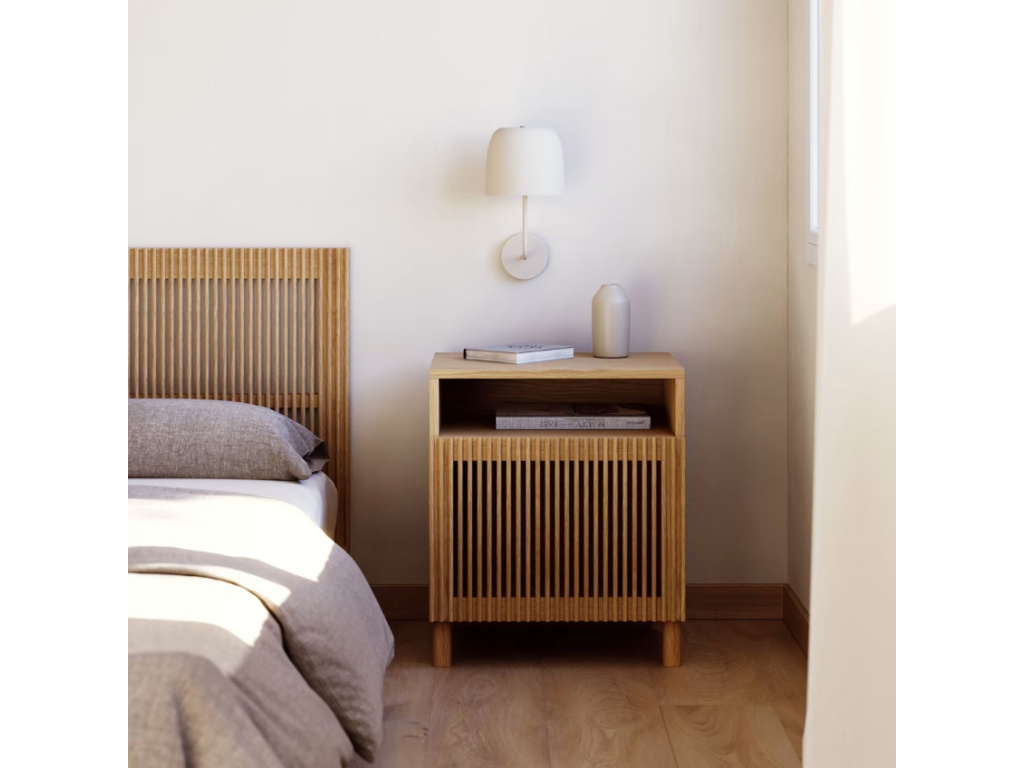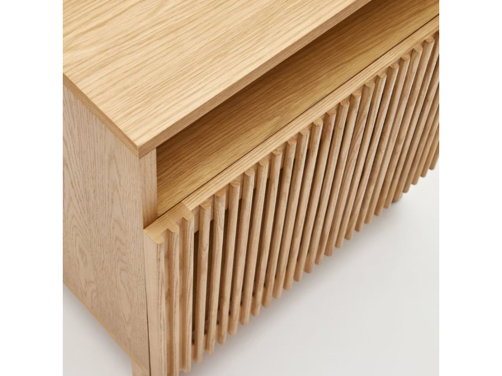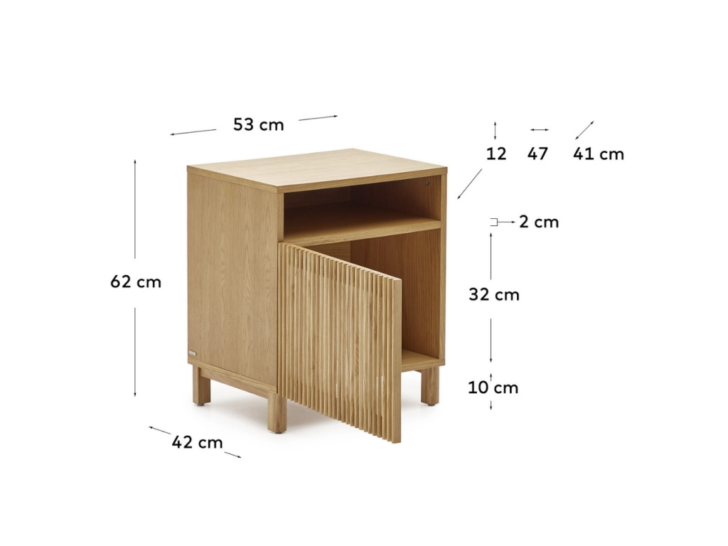 Noční stolek Belya značky Kave Home si najde místo v každé stylové domácnosti a získá si srdce milovníků praktičnosti a současných designových trendů. Stolek disponuje úložným prostorem v podobě menší otevřené police a prostorné skříňky, která se ukrývá za originálně řešenými poloprůhlednými dvířky. Nechte se okouzlit spojením krásy přírodního odstínu dřeva a jednoduchým, funkčním designem s promyšlenými detaily!