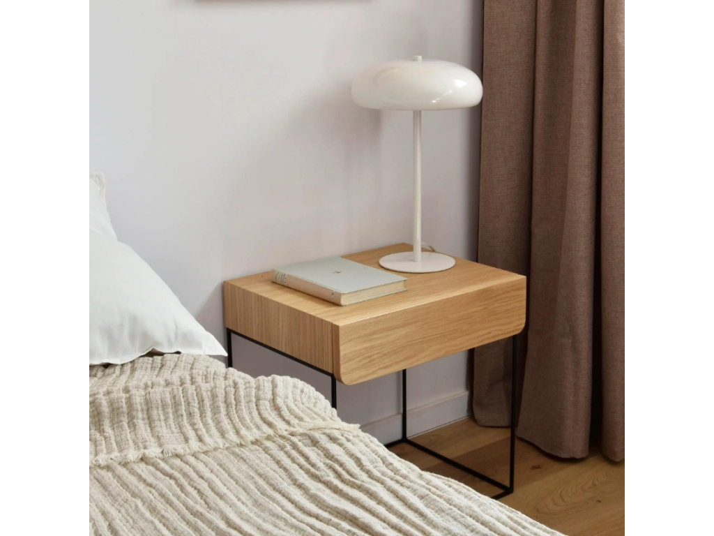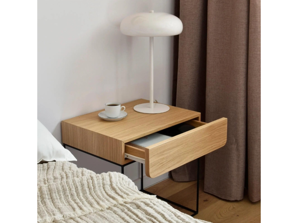 Minimalistický noční stolek Rubik disponuje praktickou zásuvkou, do které se pohodlně vejdou třeba brýle, léky, kapesníky nebo rozečtené časopisy. Díky štíhlé elegantní podnoži působí stolek vzdušně a navíc tak můžete klidně využít i prostor pod ním. Vybrat si můžete mezi přírodním a černým barevným provedením, nebo je v interiéru klidně nakombinovat.