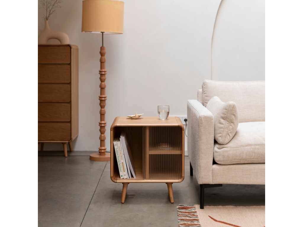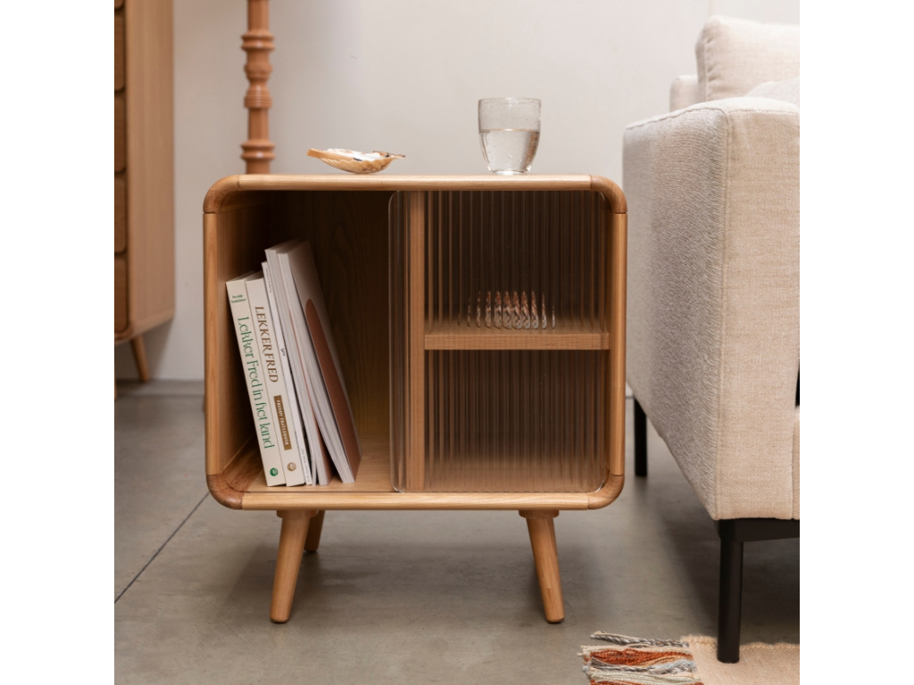 Stolek Rise je chytrý a elegantní kousek, který v sobě spojuje funkčnost, lehkost a nadčasový design. Díky kompaktním rozměrům zapadne téměř kamkoli – vedle postele, pohovky i jako samostatný solitér v interiéru. Nabízíme ho ve dvou variantách – v dekoru světlého dubu nebo tmavšího ořechu, takže si snadno vyberete ten, který ladí s vaším prostorem. Výrazným detailem jsou posuvná dvířka z tónovaného skla, která elegantně skryjí vše, co nechcete mít na očích, a zároveň dodávají celku vizuální lehkost. Rise je ideální volbou pro ty, kdo hledají malý, ale promyšlený nábytek s charakterem.