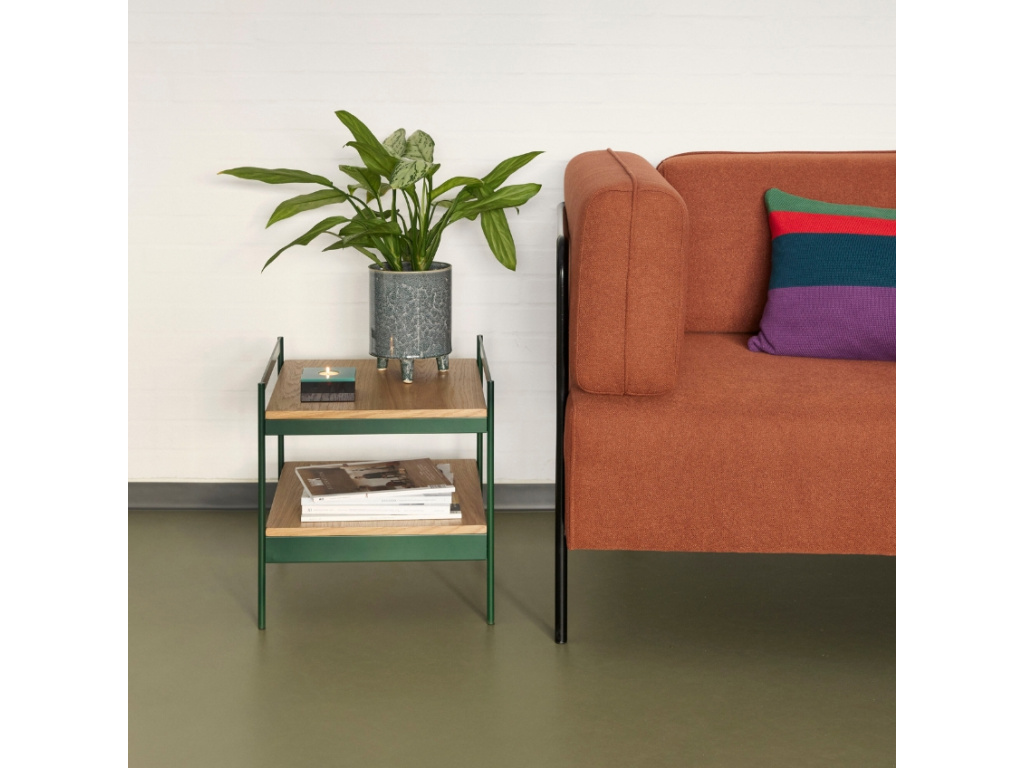 Jednoduchý, a přesto svěží design odkládacího stolku Jaunty od značky Hübsch doladí váš interiér. Bude perfektním společníkem v obývacích prostorech u pohovky či křesla. Desky z dubové dýhy doplňuje nápaditá zelená konstrukce z lakovaného kovu. Stolek Jaunty vám nabídne spousty možností využití a zároveň bude stylovým doplňkem do komerčních i nekomerčních prostor.