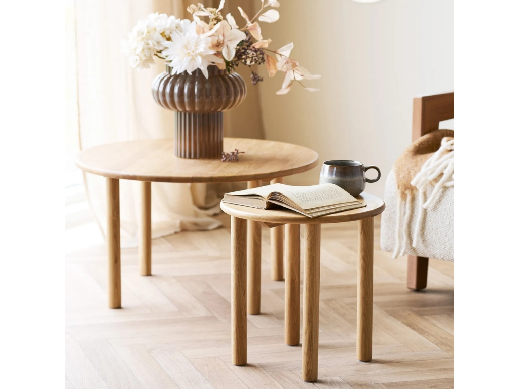 Odkládací stolek Jena vnese do vašeho interiéru přírodní eleganci a vytvoří útulnou atmosféru, kterou si okamžitě zamilujete. Jeho kulatá deska z kvalitního dřeva působí harmonicky a snadno se kombinuje s minimalistickým, boho i skandinávským stylem zařízení, přičemž zároveň nabízí dostatek prostoru pro odložení kávy, knihy nebo dekorací. Pokud hledáte spojení jednoduchosti a funkčnosti, stolek Jena splní vaše očekávání a zároveň zvýrazní osobitý charakter vašeho domova.