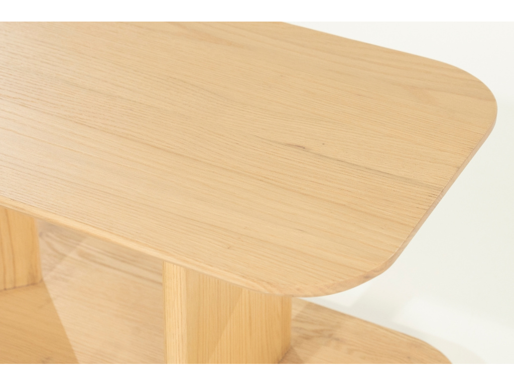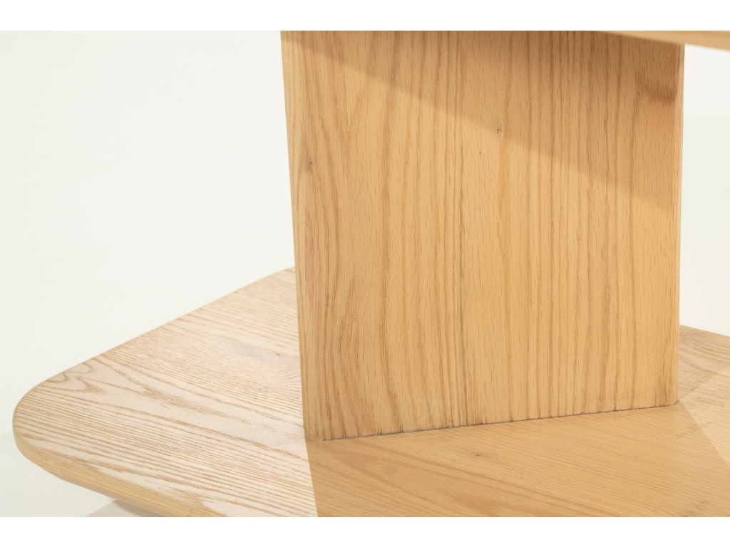 Odkládací stolek Ty je kousek, který v sobě spojuje přírodní krásu masivního dřeva s čistými liniemi moderního designu. Jeho tvar působí lehce a elegantně, zatímco dubové dřevo dodává stolku pevnost, odolnost a zvýrazňuje přirozenou kresbu materiálu. Díky svým rozměrům nabízí ideální plochu pro odložení kávy, knih či dekorací, přičemž zůstává kompaktní a snadno přenosný.