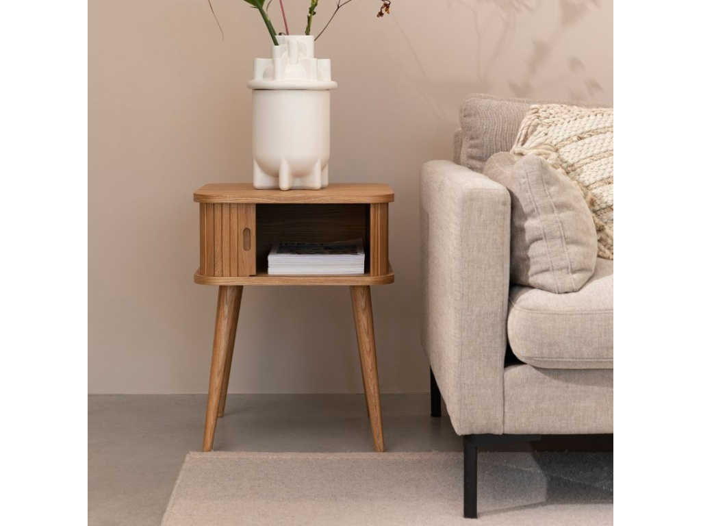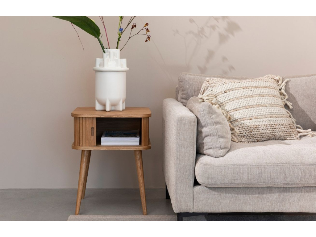 Old school odkládací stolek ZUIVER BARBIER následuje trendy moderní doby. Vrchní deska a dno stolku tvoří dubová dýha a jeho dvířka i podnož jsou vyrobeny z masivního dubového dřeva. Stolek se skvěle hodí jako odkládací místo ke gauči nebo křeslu, využít ho ale můžete i v ložnici nebo v pokoji pro hosty, kde poslouží jako noční stolek.