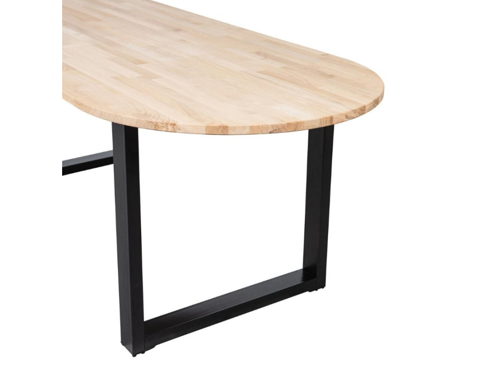 Jídelní oválný stůl Cletis nese krásný přírodní styl, který působí velmi příjemně a originálně. Deska je vyrobena z dubového dřeva a podnož ve tvaru U je lakována matnou černou barvou. Stůl Cletis se perfektně hodí do interiérů laděných do přírodních stylů.