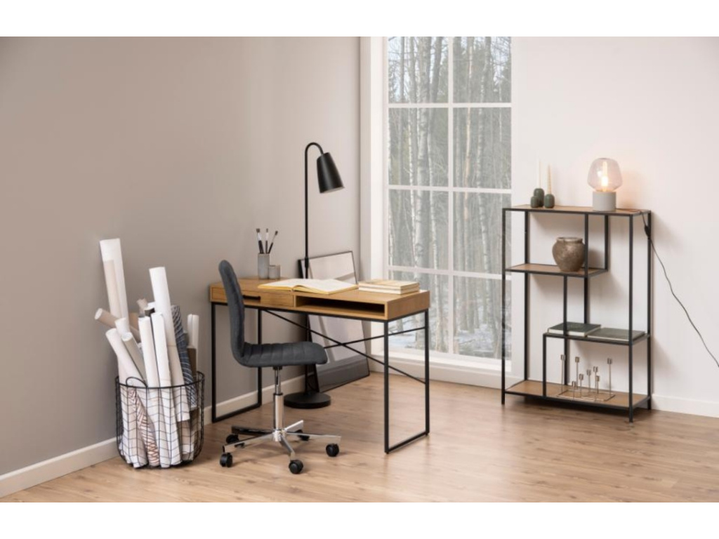 Moderní pracovní stůl Darila dodá pracovně na originalitě a jedinečnosti. Stůl má velmi zajímavě řešenou podnož, která zaujme svým minimalistickým kovovým provedením. Pracovní stůl navíc disponuje praktickou zásuvkou a policí, do kterých snadno uklidíte své dokumenty a kancelářské potřeby. Se stolem Darila bude radost pracovat.