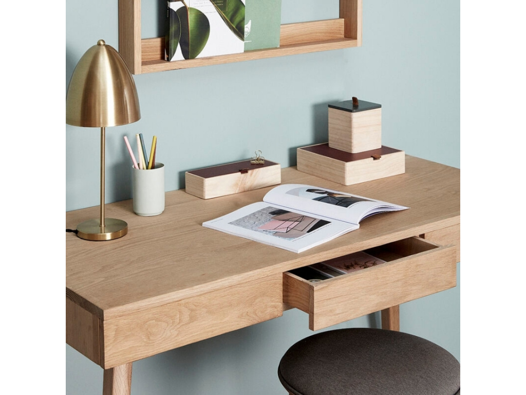 Pracovní stůl Tripple je vyroben z dubového dřeva v přírodním odstínu. Stůl je opatřen 3 praktickými zásuvkami k uložení věcí, které potřebujete mít po ruce. Díky jemné barevnosti zútulní interiér vaší pracovny či studentského pokoje.