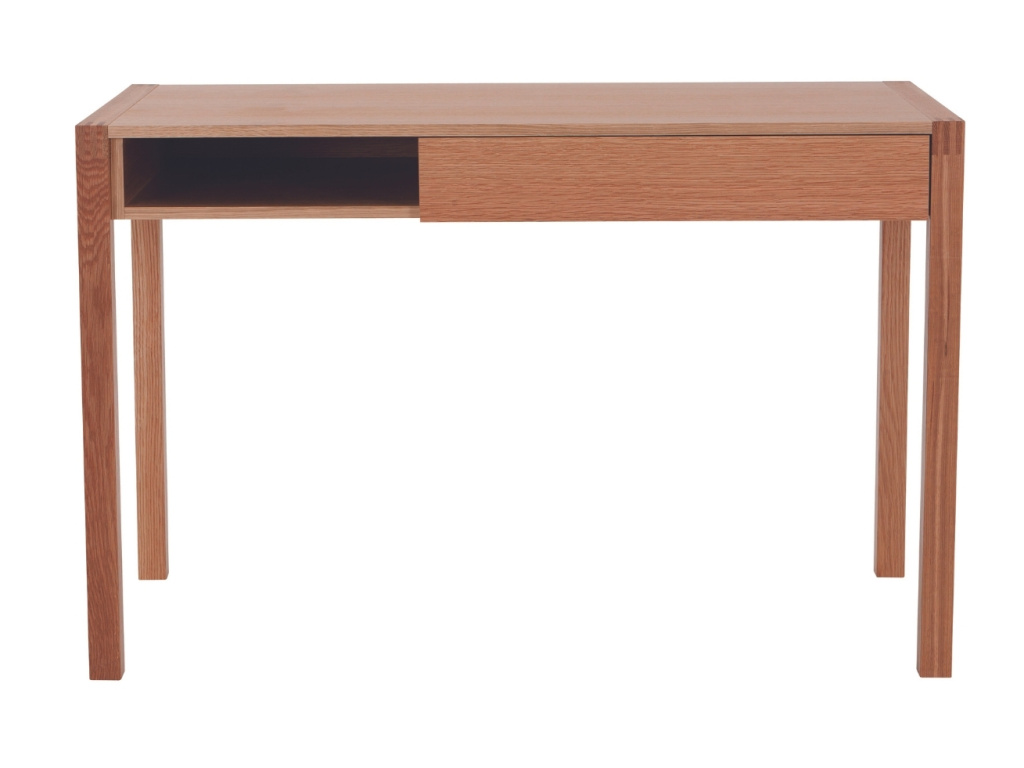 Pracovní stůl Woodman NewEst je skvělým doplňkem vaší pracovny i koutu obývacího pokoje. Deska z dřevotřísky potažená dubovou dýhou v přírodní barvě dostává nádech skandinávského a moderního stylu. Atraktivní prvek dodává stolu podnož z masivního dubového dřeva. V tomto designovém stolu najdete také praktický úložný prostor na základní kancelářské potřeby díky zásuvce na kolejnicích a praktické otevřené polici.