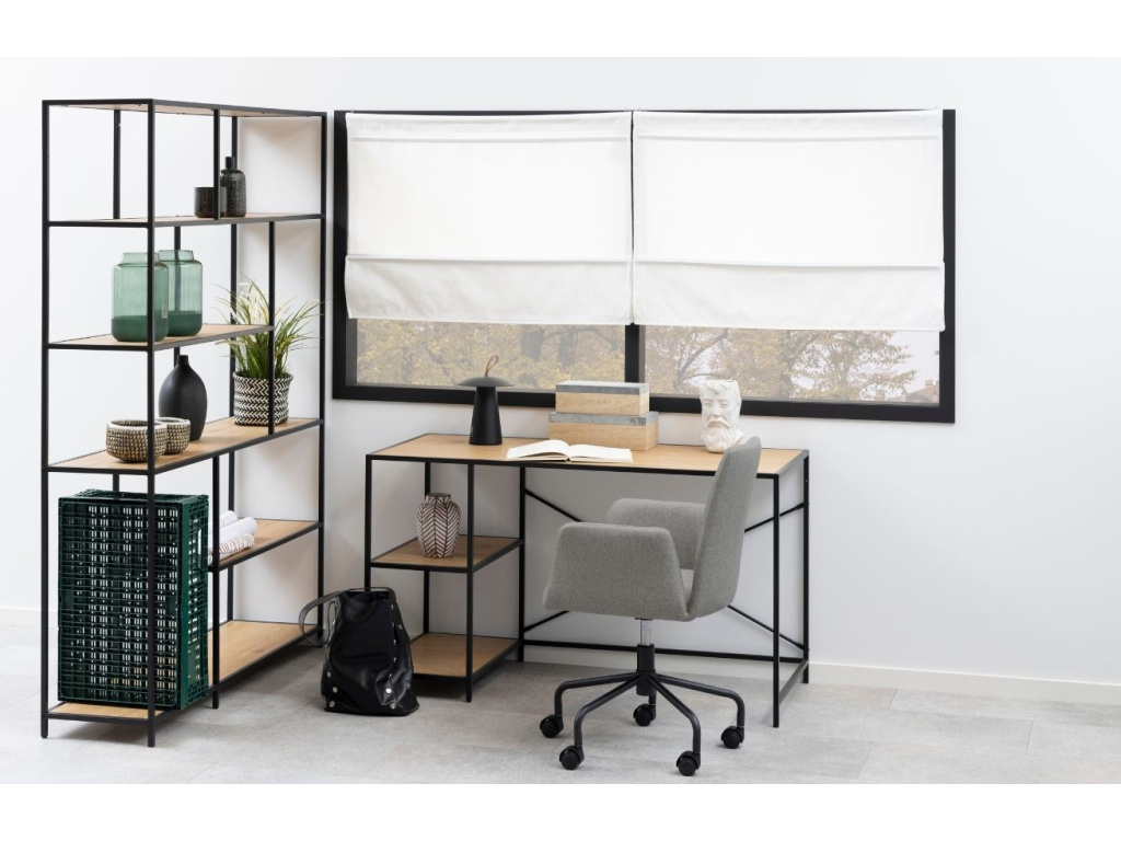 Vysoce moderní dubový regál Darila dodá vašemu interiéru na originalitě a jedinečnosti. Produkt má velmi zajímavě řešenou konstrukci, která je specifická kovovým provedením. Police z laminátu v dubovém dekoru působí vzdušně a stolu dodá na atraktivitě a odolnosti. Regál disponuje 8 praktickými policemi různých šířek a výšek, kam vejde spousta dekorací, knížek či dalšího inventáře. Doporučujeme kombinaci více druhů nábytku z kolekce Darila.