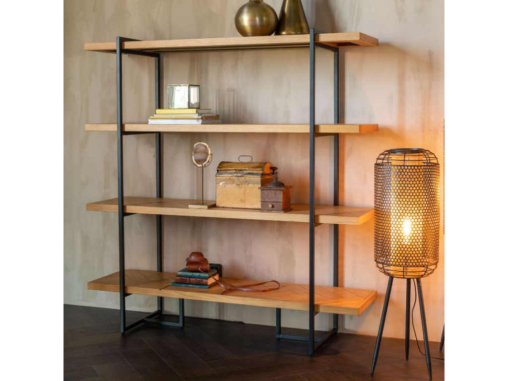 Regál Class nabízí úložný prostor v podobě čtyř polic a zaujme svým provedením ve stylu vintage. Police jsou vyrobeny z kvalitní dřevovláknité desky s vrchní vrstvou z přírodně zbarvené dubové dýhy s motivem rybí kosti. Bezpečnou nosnost již zmíněných polic celé knihovny zajišťuje pevný kovový rám černé barvy, o jehož stabilitu nemusíte mít strach. Tento regál obohatí váš interiér o elegantní a prostorný úložný prostor! Doporučujeme jej kombinovat s dalšími produkty z této série.