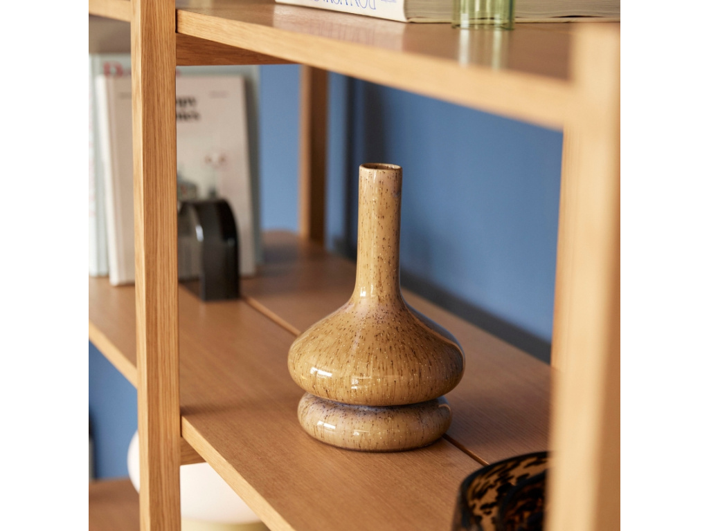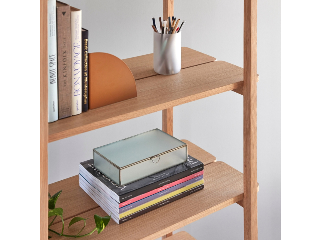 Regál Hübsch Mason zaujme svým minimalistickým provedením a čistým designem. Jeho konstrukci z dubového dřeva doplňuje pět otevřených polic z dubové dýhy, které poskytují dostatečný prostor pro vystavení dekorací, květin i knih. Regál Mason bude všestranným pomocníkem do kuchyně, pracovny nebo obývacího pokoje, kde na sebe zaručeně strhne pozornost!