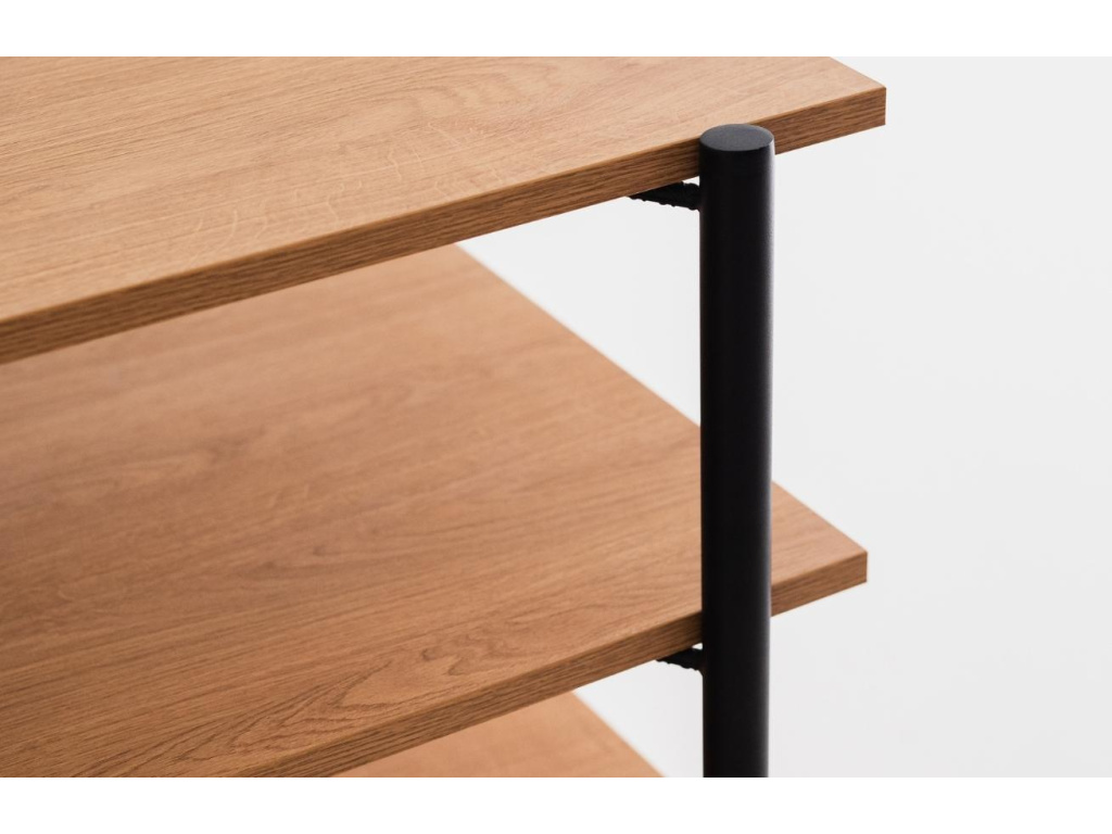 Dobře organizovaný prostor je základem pro pohodlný život. Regál z řady Raven je ideálním pomocníkem nejen pro zpestření vašeho interiéru, ale také jako úložný prostor. Police jsou vyrobené z laminátu v dekoru dubového dřeva, které v kombinaci s černě lakovanou konstrukcí vytváří minimalistický a čistý design. V řadě Raven najdete nejen regály, ale také konferenční či toaletní stolky. Doporučujeme kombinaci více prvků z řady Raven. Dolaďte svůj interiér k dokonalosti.