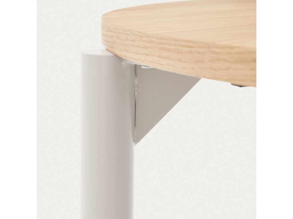 Rozkládací jídelní stůl Kave Home Montuiri se skvěle hodí do menších interiérů. Díky dvěma přiloženým rozkládacím deskám se ale kdykoliv snadno promění v prostorné místo pro více hostů. Přírodně zbarvená dubová dýha doplněná o světlou podnož se bude vyjímat ve světlejších rustikálních i scandi interiérech. Dopřejte s tímto stylovým kouskem vaší jídelně atraktivní středobod, u kterého se budete rádi scházet s rodinou i přáteli!