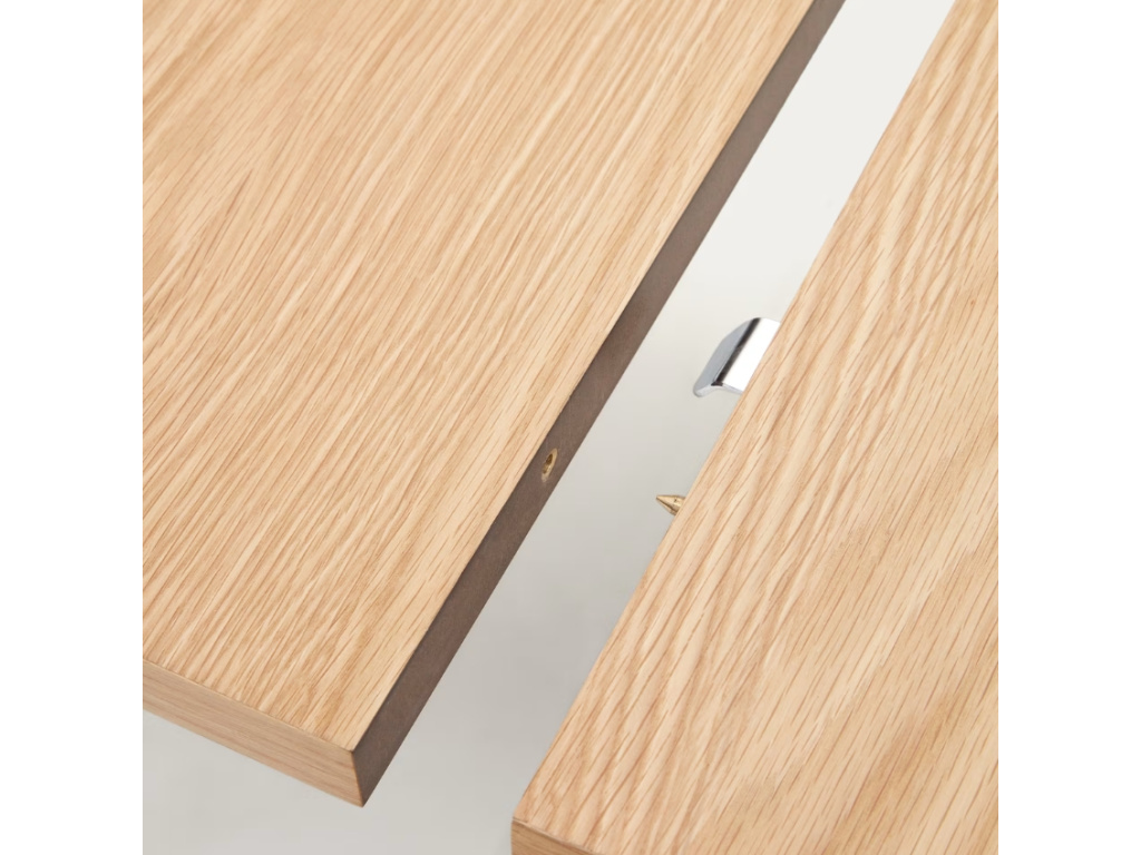 Rozkládací jídelní stůl Kave Home Montuiri se skvěle hodí do menších interiérů. Díky dvěma přiloženým rozkládacím deskám se ale kdykoliv snadno promění v prostorné místo pro více hostů. Přírodně zbarvená dubová dýha doplněná o tmavou podnož se bude vyjímat v rustikálních i scandi interiérech. Dopřejte s tímto stylovým kouskem vaší jídelně atraktivní středobod, u kterého se budete rádi scházet s rodinou i přáteli!