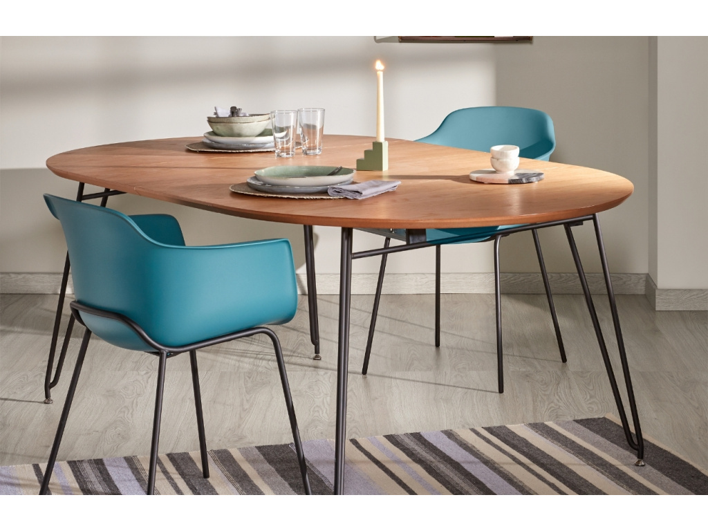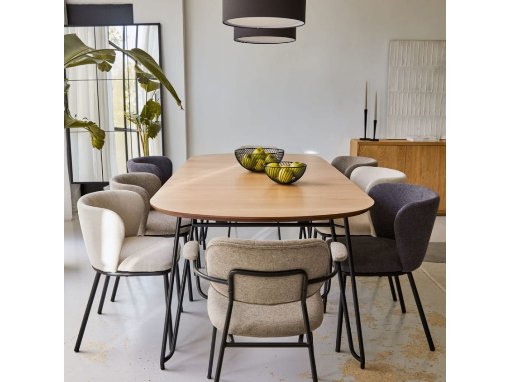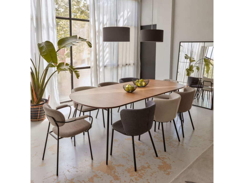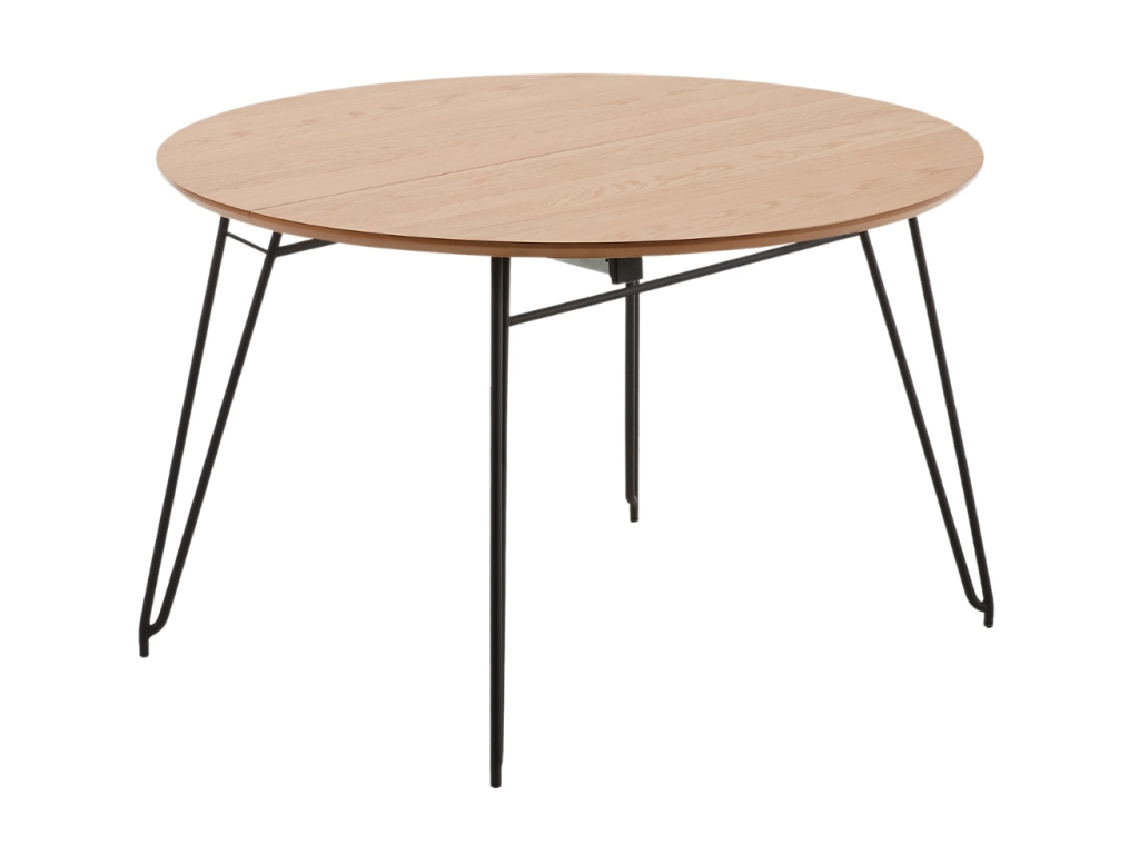 Rozkládací stůl Kave Home Novac bude stylovým místem pro příjemný čas s rodinou a návštěvou u společného stolování. Deska stolu z kvalitní MDF desky potažená dubovou dýhou skvěle koresponduje s černě lakovanou ocelovou podnoží. Hodí se do menších i větších moderních interiérů s přírodními dekoracemi.