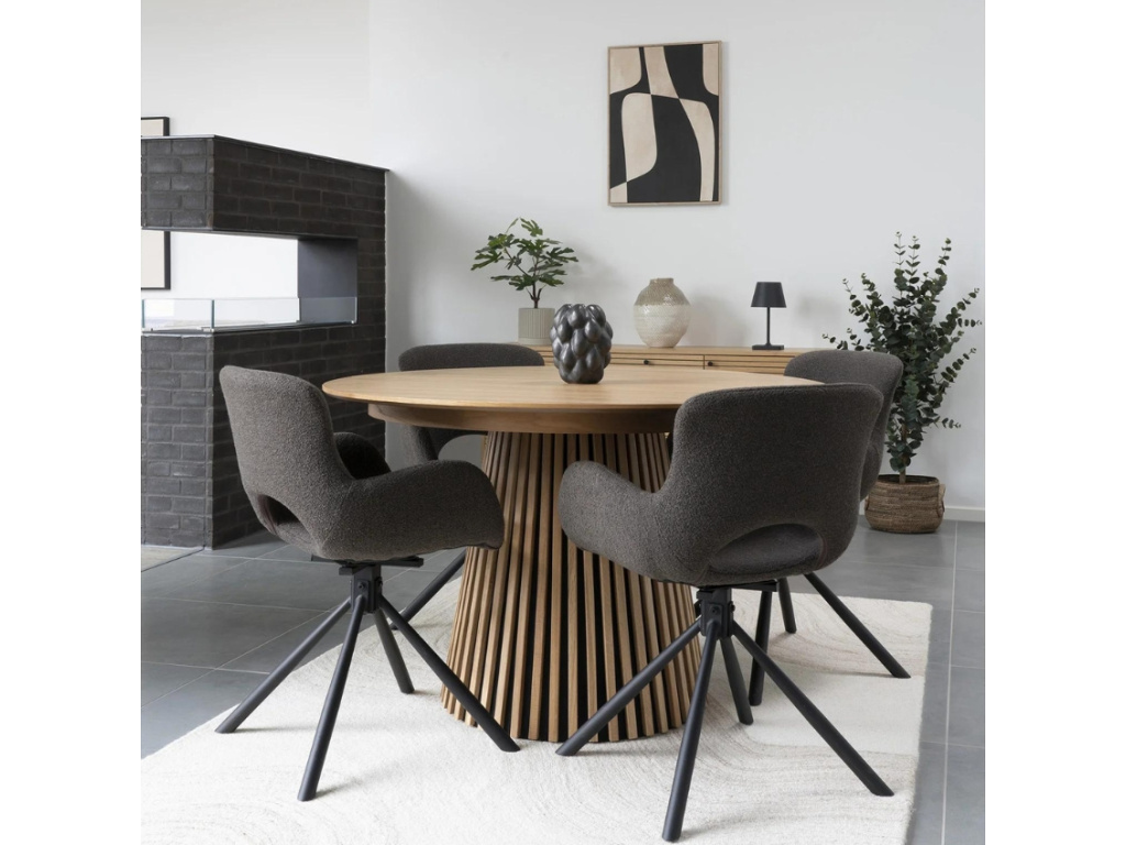 Jídelní stůl Osakien je neuvěřitelně praktický – má totiž tři různé možnosti využití. Z výchozího kulatého tvaru je možné stůl rozložit pomocí prodlužovacích desek na dva další rozměry. Jeho velikost tak snadno změníte podle aktuální situace – tuto praktickou funkci jistě oceníte při početnější návštěvě přátel nebo rodiny. Za pozornost stojí také originálně zpracovaná podnož, která činí stůl velmi stylovým kusem nábytku.