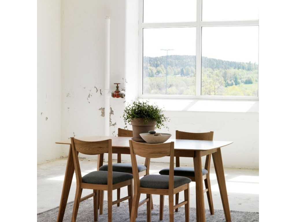 Jídelní stůl CIRRUS značky ROWICO v sobě skrývá prodlužovací křídlo. Můžete ho tak kdykoliv snadno rozložit a využít místo k pohoštění více hostů. Stůl stojí na podnoži z masivního dubového dřeva, která je doplněna tenkou deskou z dubové dýhy. Skvěle zapadne do prostorných jídelen laděných v přírodním stylu. Dostupný je také ve větší velikosti o šířce 190 cm.