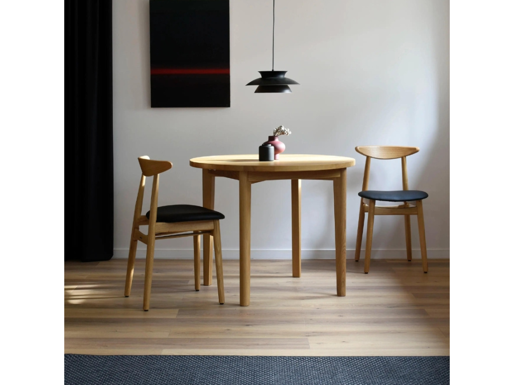 Kulatý jídelní stůl Rubio je skvělou volbou pro méně prostornější interiéry. Z průměru pouhých 95 cm ho snadno rozložíte až na 150 cm – malý stůl pro 4 osoby tak během chvilky nabídne prostor až pro 6 osob. A když už větší jídelní prostor nebude potřeba, prodlužovací desku snadno zasunete za skříň, pohovku nebo pod postel. Užijte si stolování s tímto nádherným masivním designovým kouskem!