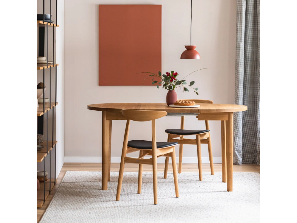 Kulatý jídelní stůl Rubio je skvělou volbou pro méně prostornější interiéry. Z průměru pouhých 95 cm ho snadno rozložíte až na 205 cm – malý stůl pro 4 osoby tak během chvilky nabídne prostor až pro 8 osob. A když už větší jídelní prostor nebude potřeba, dvojici prodlužovacích desek snadno zasunete za skříň, pohovku nebo pod postel. Užijte si stolování s tímto nádherným masivním designovým kouskem!