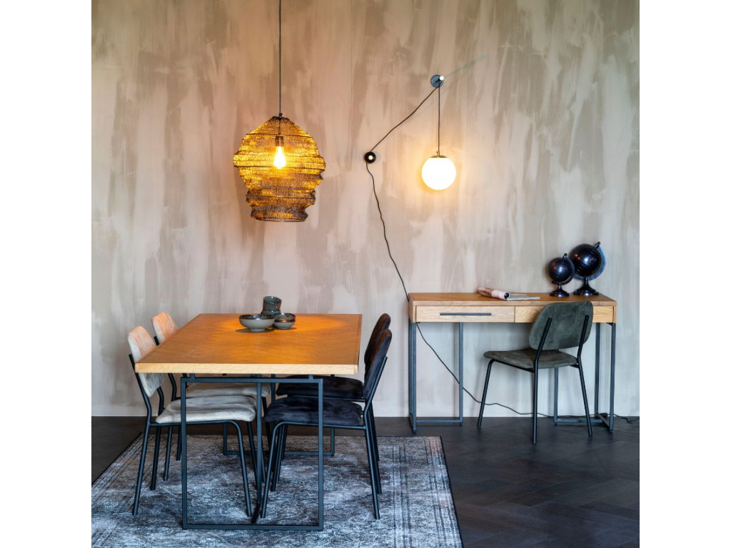 Toaletní stolek Class je tvořen dřevěnou deskou a elegantní podnoží černé barvy. Vrchní část stolu se vzorem rybích kostí je vyrobena z polotvrdé dřevovláknité desky, kterou z obou stran pokrývají tenké desky z dubové dýhy přírodní barvy. Podnož je zakončena gumovými podložkami chránícími vaší podlahu před poškrábáním. Stolek můžete skvěle doladit s dalšími kousky ze série DUTCHBONE CLASS.