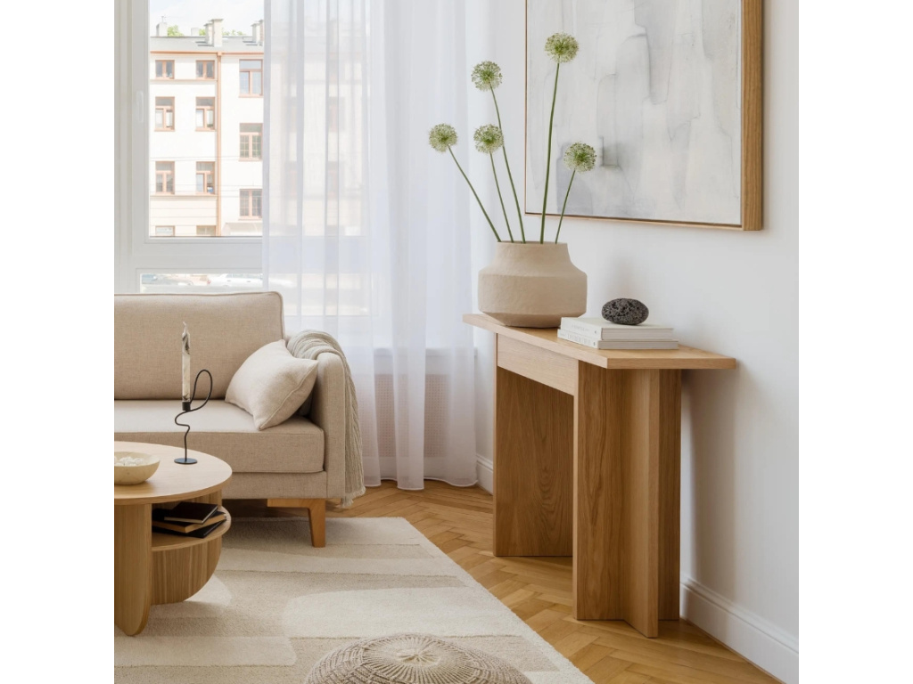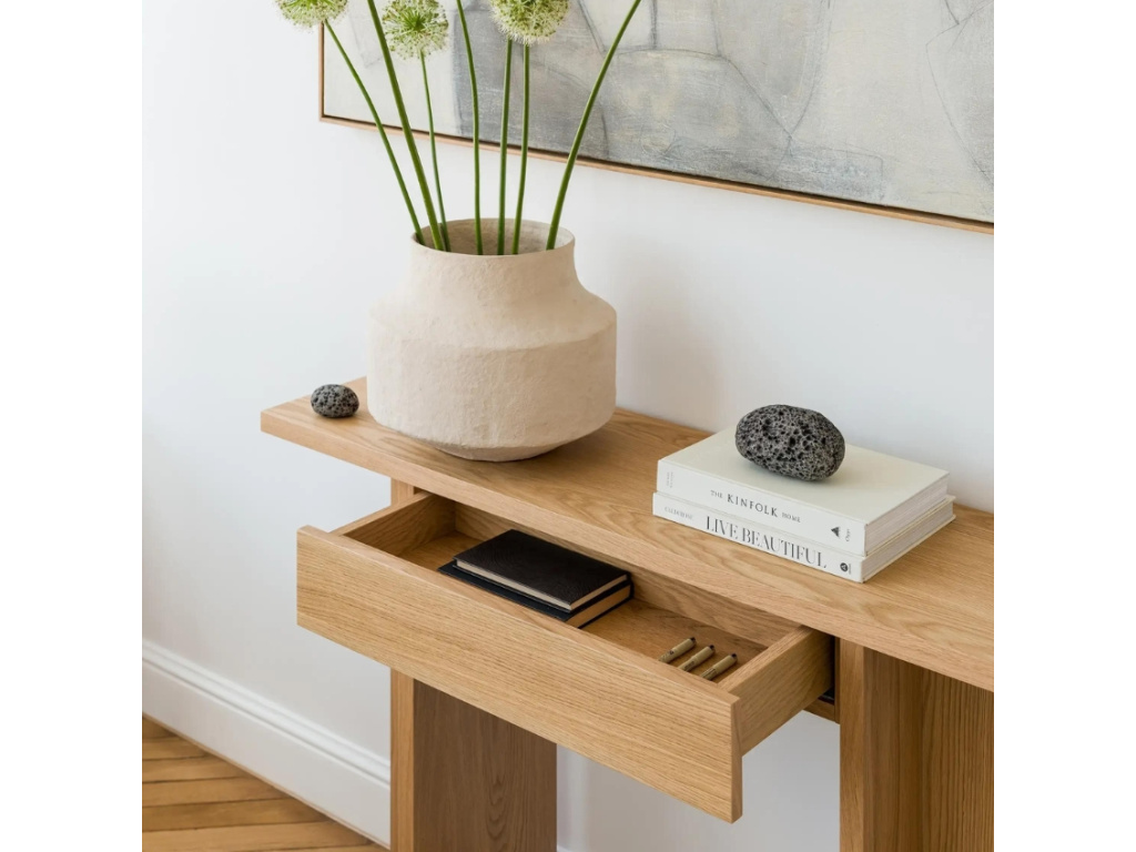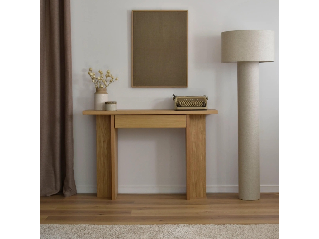 Dubový toaletní stolek Holger disponuje praktickou zásuvkou, do které uschováte nejrůznější cennosti a drobnosti. Minimalistický design společně s přírodním materiálem váš obývací pokoj zútulní a bude představovat stylový nadčasový prvek, který vás jen tak neomrzí. Umístit ho ale můžete i kamkoliv jinam – třeba do chodby nebo do ložnice. Doplňte ho dalšími kousky ze stejnojmenné série a získejte dokonale sladěný prostor plný hřejivé atmosféry.