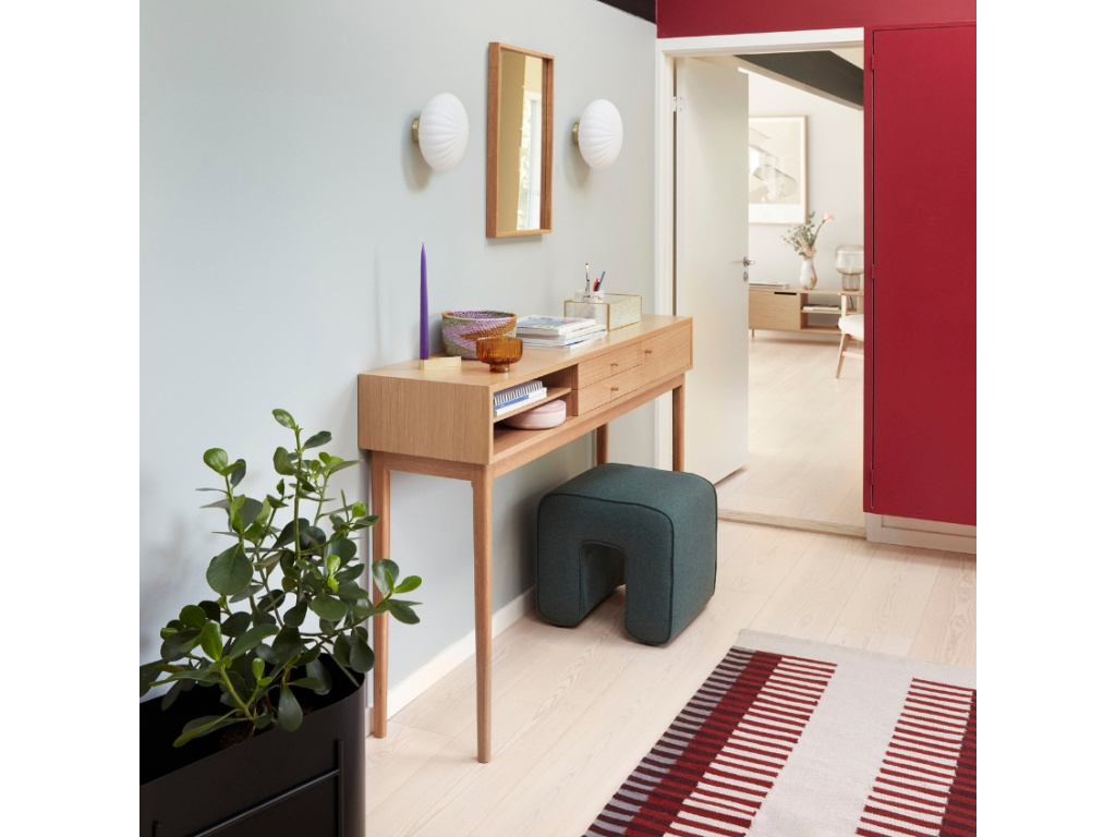 Toaletní stolek Collect od značky Hübsch přinese do interiéru nádech elegance a minimalismu. Disponuje velkým množstvím úložného prostoru v podobě dvou zásuvek a otevřených i uzavřených polic. Konstrukce stolku je vyrobena z dubové dýhy s krásnou kresbou, která je doplněna o podnož z masivního dubového dřeva. Stolek se bude skvěle hodit například do předsíně nebo do chodby, kde na něj můžete naaranžovat dekorace.