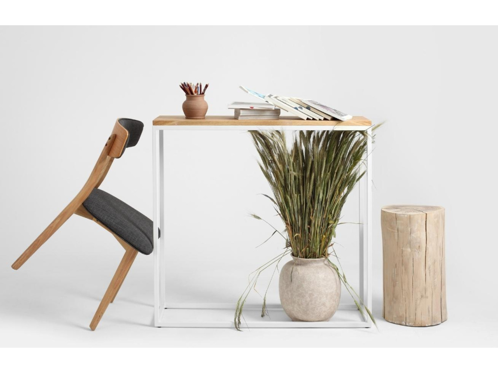 Stylový toaletní stolek Julia zaujme svým minimalistickým vzhledem. Díky kombinaci dubového dřeva a bíle lakované kovové konstrukce je tento stolek kus nábytku, který nesmí chybět v žádném interiéru, který je zařízený ve skandinávském stylu. Tento stolek nejlépe umocní jemné barevné odstíny nebo kombinace světlých či tmavých doplňků.