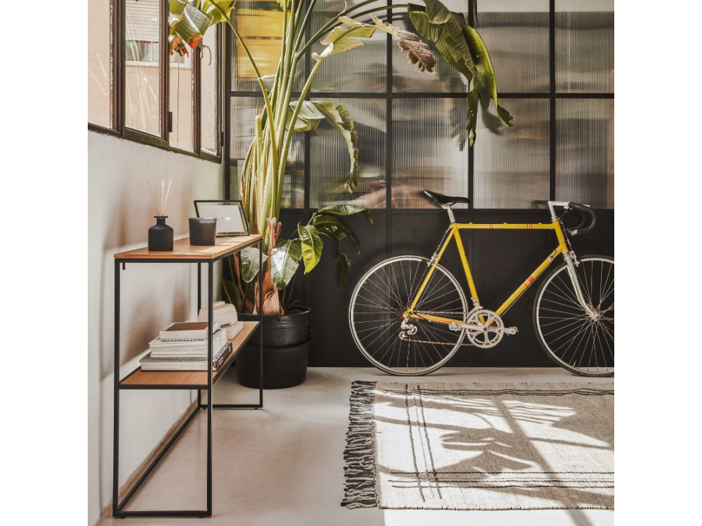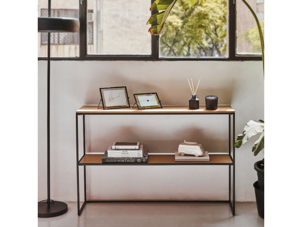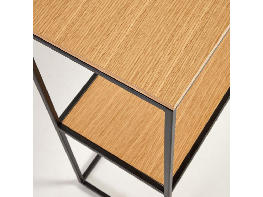 Toaletní stolek Yoana s minimalistickým designem pochází z rukou designérů značky Kave Home. Jednoduchou, černě lakovanou kovovou konstrukci doplňují dvě prostorné desky z dubové dýhy. Odkládací prostor stolku můžete využít třeba na knihy, fotoalba nebo oblíbené svíčky či difuzéry. Yoana působí nadčasově a do vašeho interiéru vnese nádech severské čistoty a elegance.