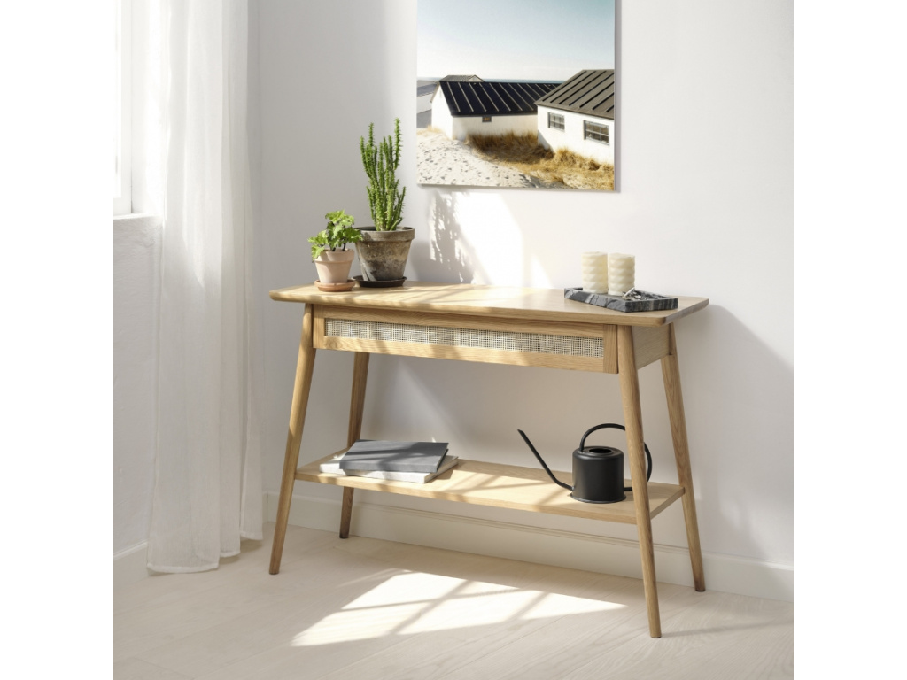 Dubový toaletní stolek Barrali od značky Unique Furniture vám nabídne úložný prostor v podobě jedné zásuvky a police. Díky kombinaci dubové dýhy a ratanu přenese kousek přírody i do vašeho domova. Praktickým prvkem stolku je spodní police, kterou využijete na vaše oblíbené dekorace, knihy či květiny. Pokud hledáte neobyčejný kousek do ložnice či předsíně, toaletní stolek Barrali vás rozhodně nezklame. Navíc pochází z celé série produktů, takže můžete úložné prostory ve vašem interiéru dokonale sladit.