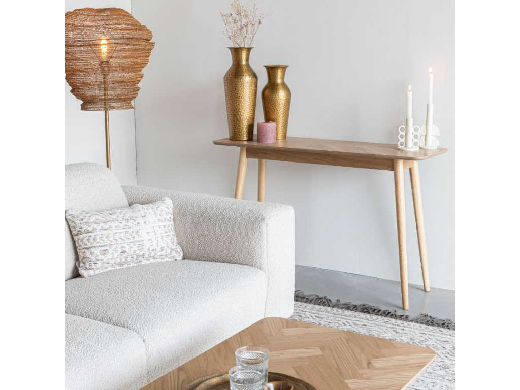 Toaletní stolek WLL FABIO s dubovou dýhovanou deskou a lakovanou dubovou podnoží je moderní, minimalisticky řešený stolek, který velmi dobře doplní interiéry s rustikálními prvky. Hledáte-li stylový prostor pro vystavení vašich květin a dekorací, je Fabio výbornou volbou. Sladit ho můžete také s dalšími produkty ze série Fabio - najdete v ní odkládací a konferenční stolky i stoly jídelní.