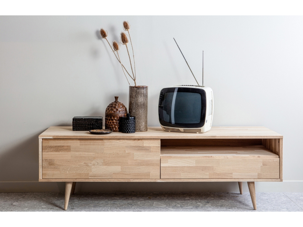 Designový TV stolek Alize vnese do vašeho domova eleganci a retro design ve stylu šedesátých let minulého století. TV stolek nabízí dostatek úložného prostoru v podobě šuplíku, uzavíratelného regálu a police, na kterou je možné umístit televizi, knihy, dekorace, zkrátka vše, co potřebujete mít stále při ruce. Stolek Alize je vyrobený z čistě přírodního materiálu a pro svůj jednoduchý vzhled se výborně hodí do všech klasicky i moderně zařízených interiérů.