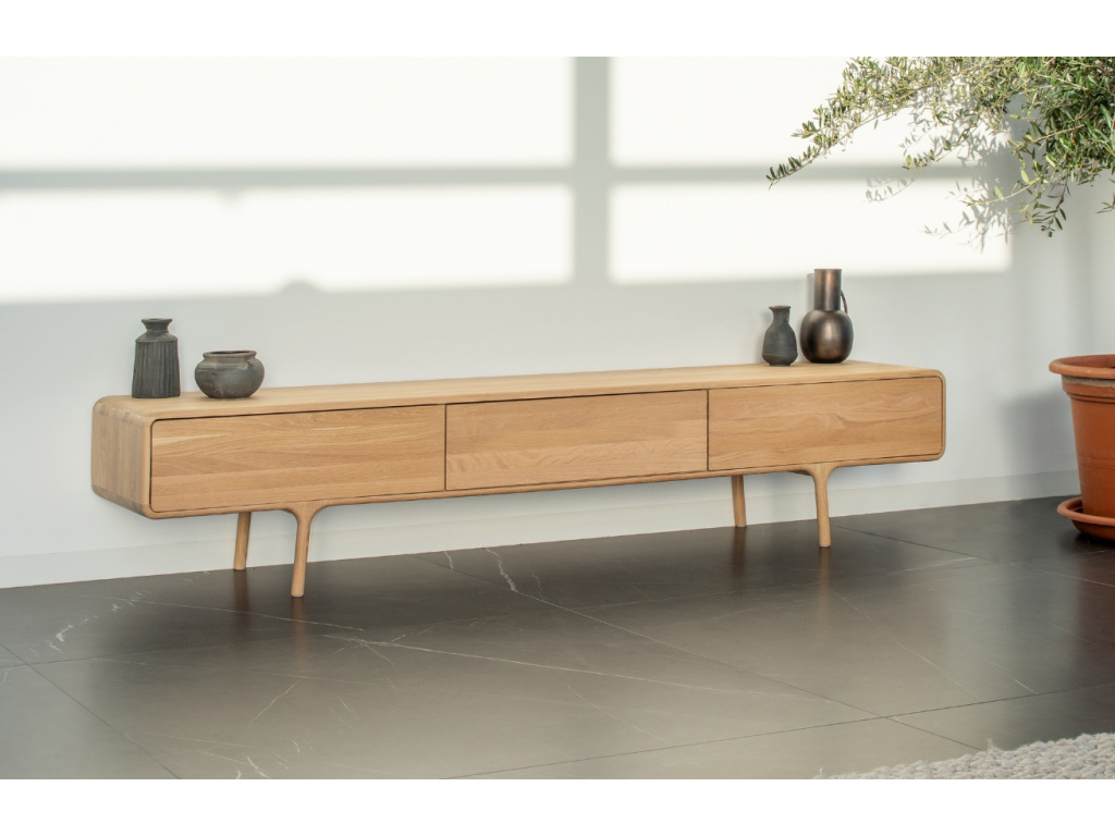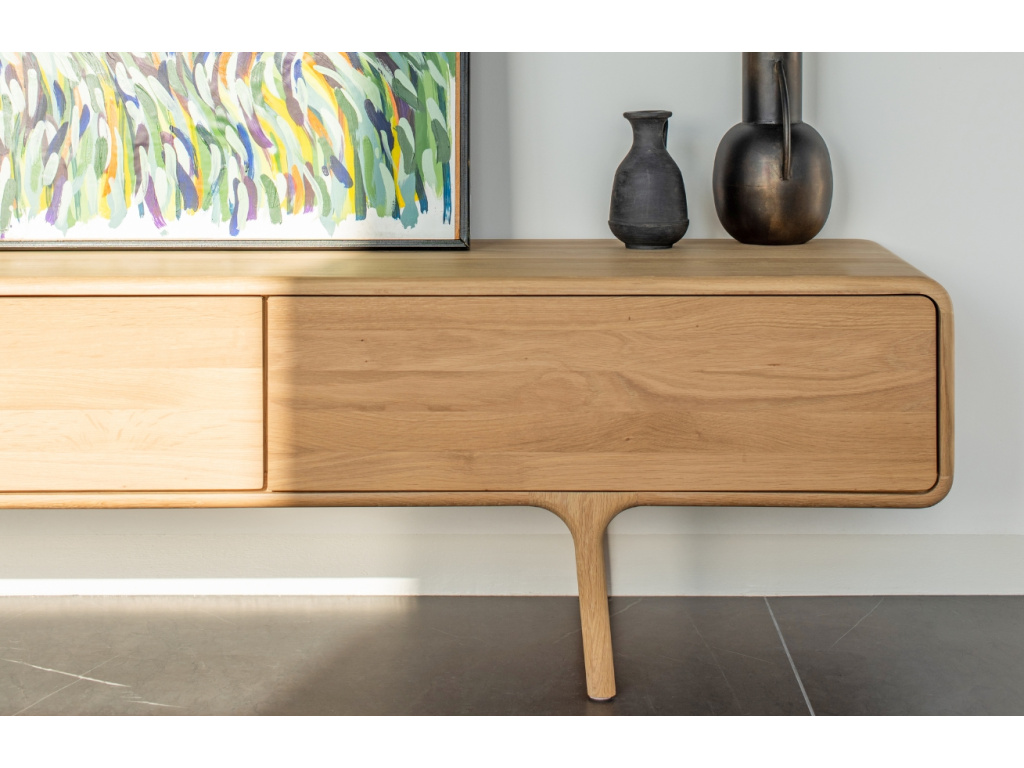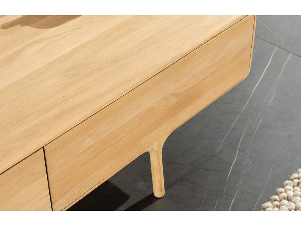 TV stolek Fawn od značky Gazzda je designovým kouskem, který vnese moderní a svěží styl do vašeho interiéru. Naolejované dubové dřevo doplní zejména jednoduše zařízené interiéry s minimalistickými a skandinávskými prvky. Fawn si najde své místo především v obývacích pokojích, ale klidně i v ložnicích. Série Fawn nabízí i další úložné prostory v podobě TV stolků a komod – vytvořte si tak jedinečný set, který dodá vašemu domovu styl a eleganci.