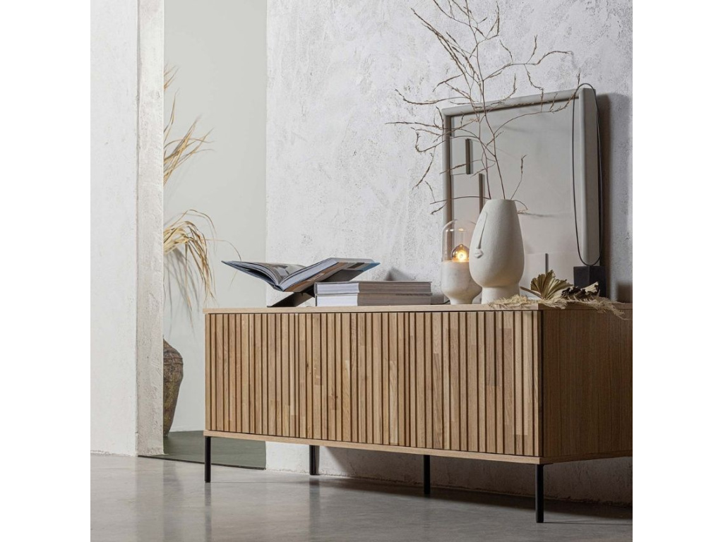 TV stolek Gravia ze stejnojmenné řady nábytku nabízí jedinečný design a praktický úložný prostor v podobě šesti prostorných polic. Police jsou schovány za třemi dvířky se systémem otevírání push to open. Zajímavý motiv žebrování podtrhne celkový dojem stolku a dodá mu elegantní a rustikální vzhled. Přírodní odstín dubové dýhy vnese do vašeho obývacího pokoje pocit tepla a útulna. Jemná inspirace retro stylem dodá celému prostoru osobitý charakter.