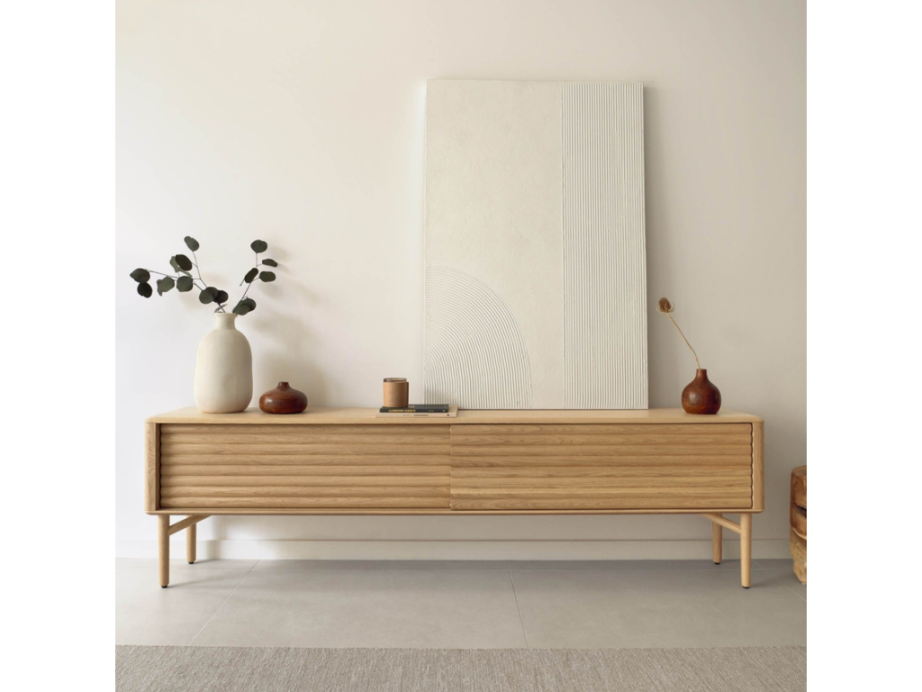 ProhlédnoutDubový TV stolek Kave Home Lenon 200 x 35 cm